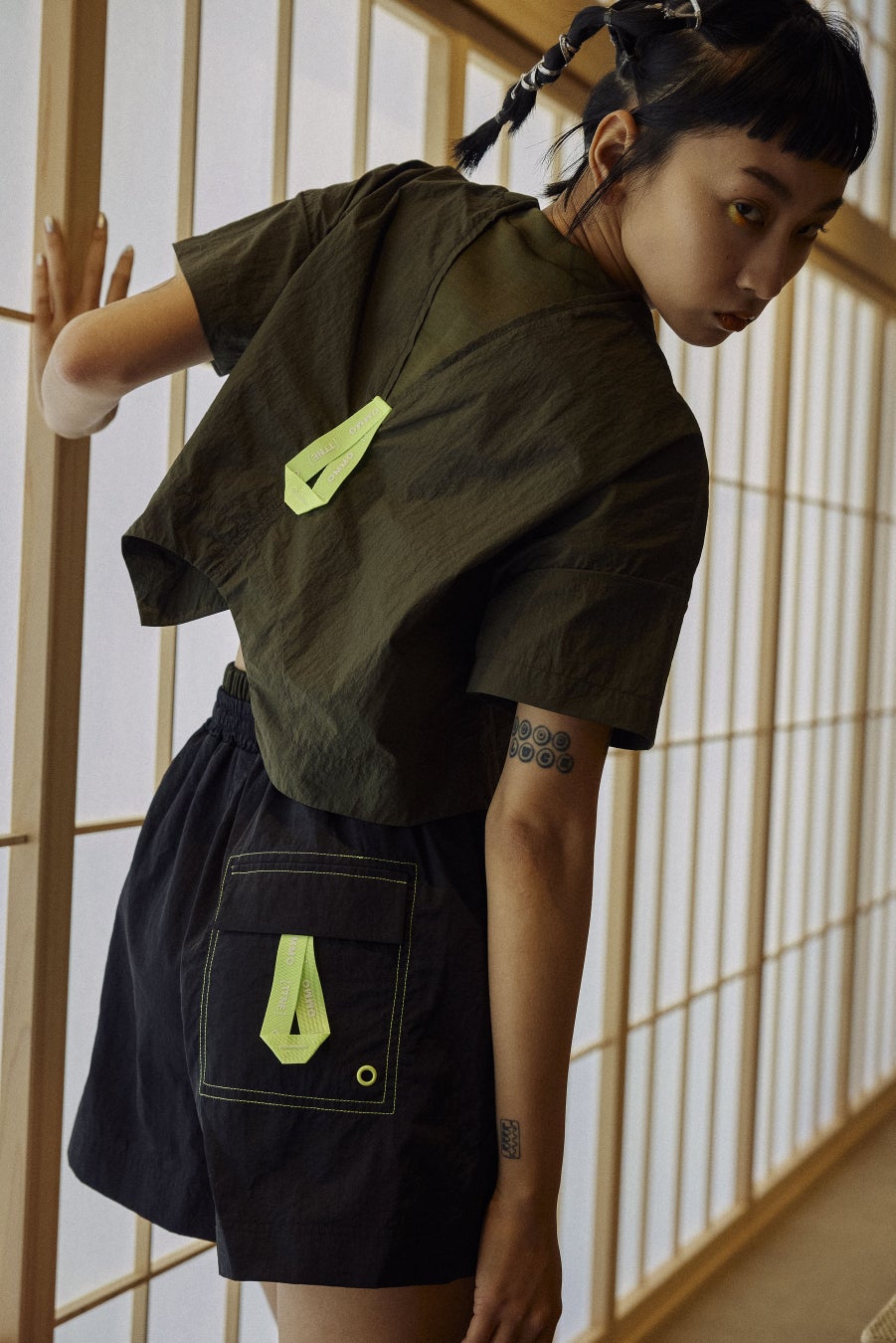 速乾性、通風性に優れた素材を使用しサウナでの着用を前提とした機能を備えつつもタウンウェアとして着用して頂けるデザインに。 またコラボアイテム全てにネオンイエローのデザインポイントと新たにデザインしたラバーネームとアイコンテームが付いています。