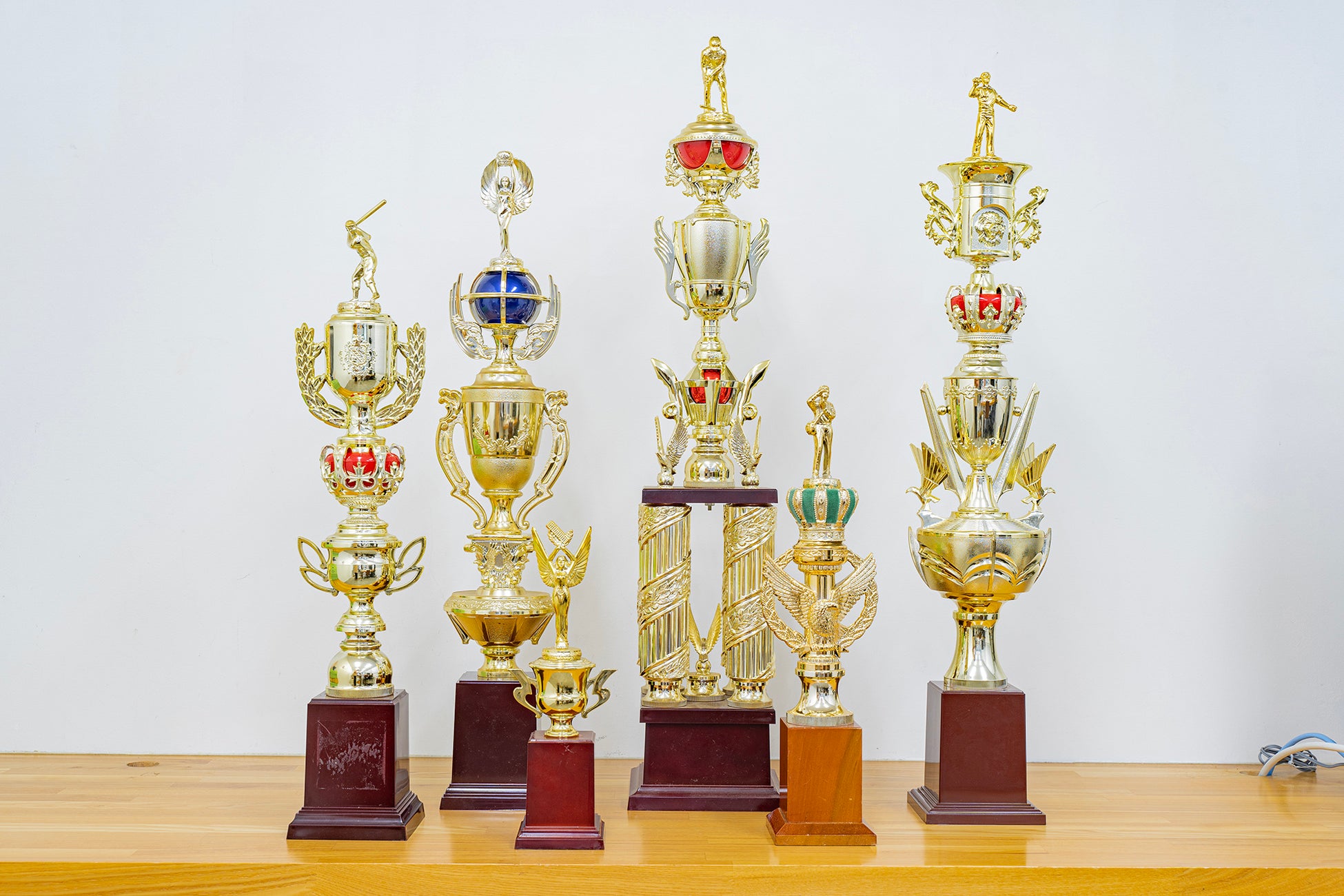 友人・知人の頂き物など、各種自宅に眠っている『捨てるに捨てられないトロフィー』を集め、選定しました。30年前のカラオケ大会や50年前のそろばん大会など、興味深い代物が集まりました。