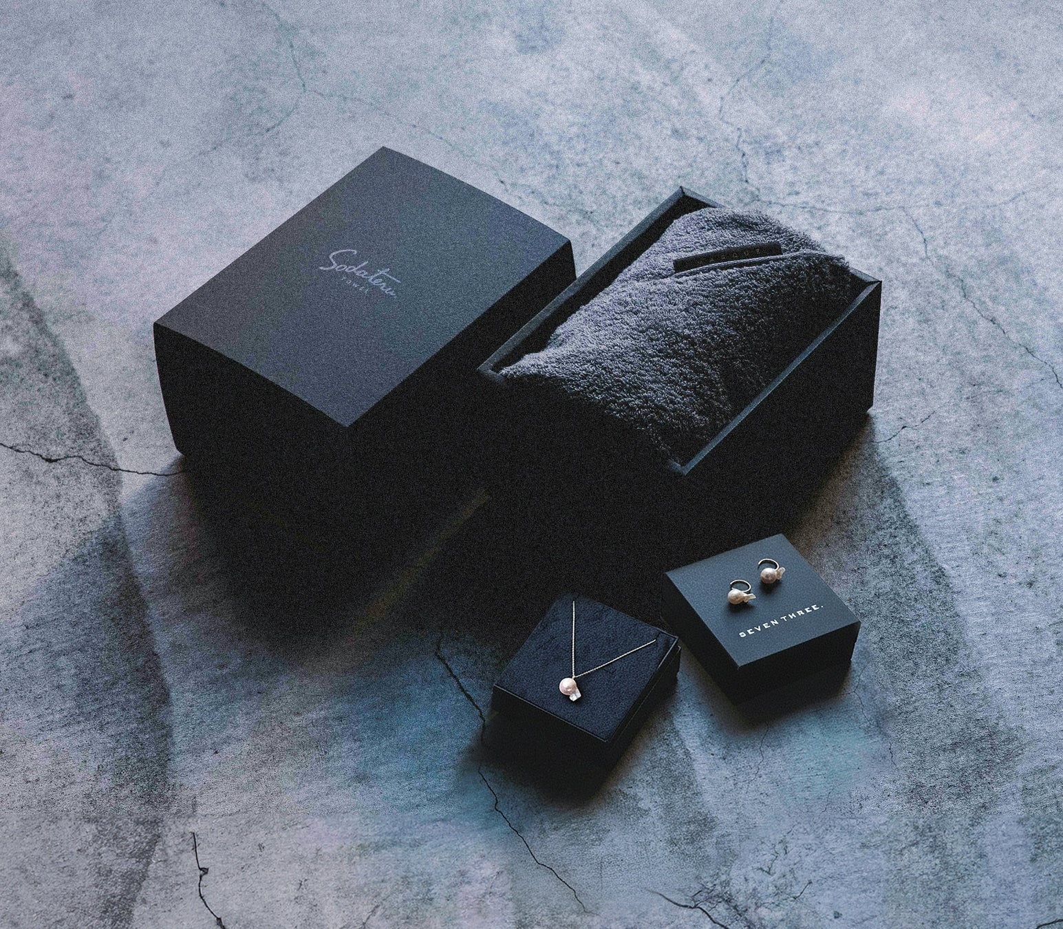 【SEVEN THREE.】の金魚真珠は、伊勢志摩の職人や生産地を支援したいという強い想いから、「真白・真円だけでなく、持って生まれた色や形はそのままで美しい」との信念のもと、無調色・無加工の真珠の個性(ストーリー)を大切にしたデザインとなっております。