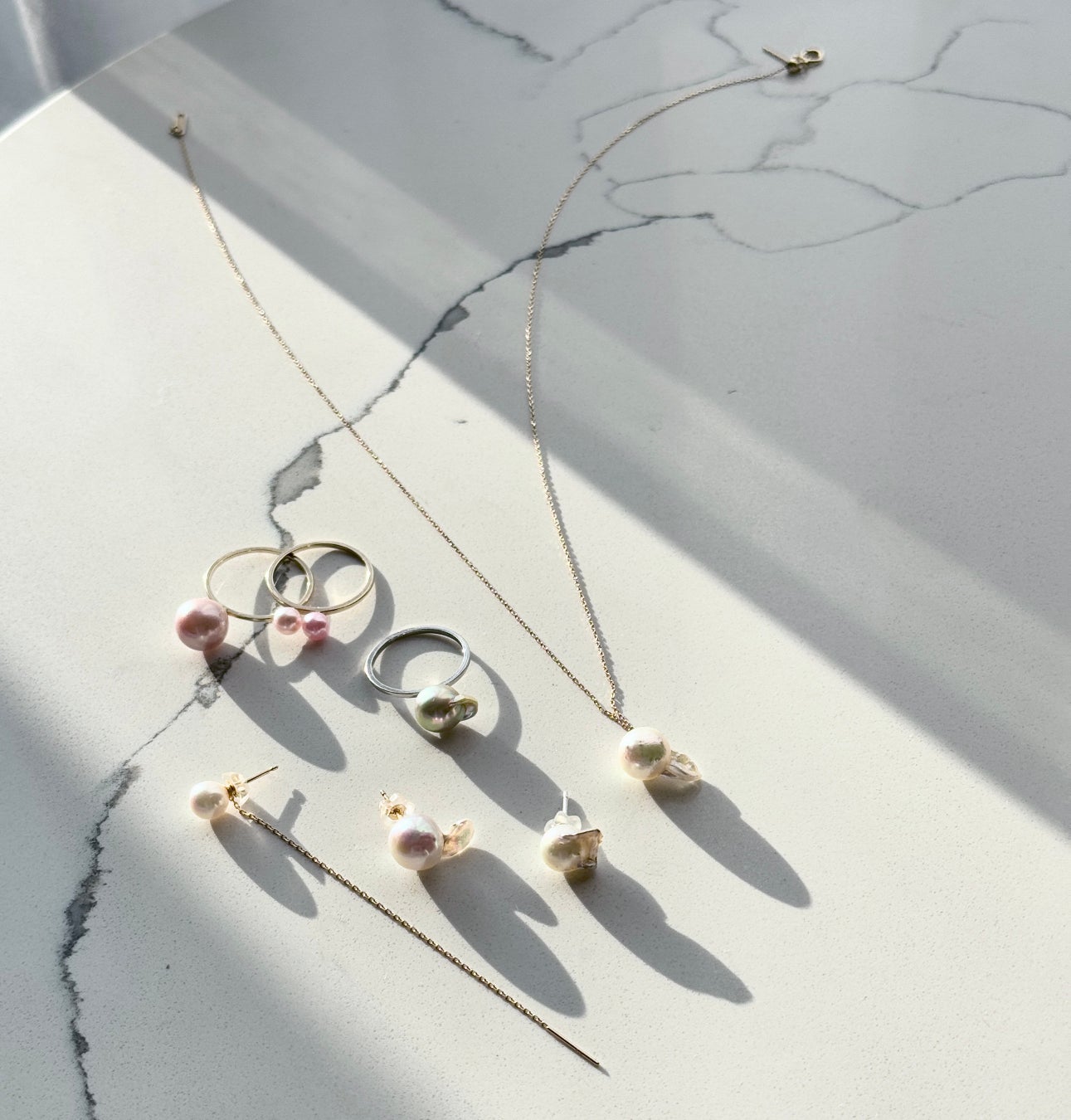 今回のPOPUPでは、SEVEN THREE.(https://www.seventhree.jp/)の真珠や個性を大切にした金魚真珠を使ったジュエリー(ネックレス、ピアス、ラペルピン等)の、日頃なかなか出会えない商品の展示販売を行います。