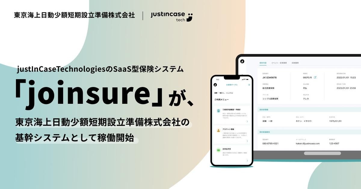 justInCaseTechnologiesのSaaS型保険システム「joinsure」が東京海上日動少額短期設立準備株式会社の基幹システムとして稼働開始