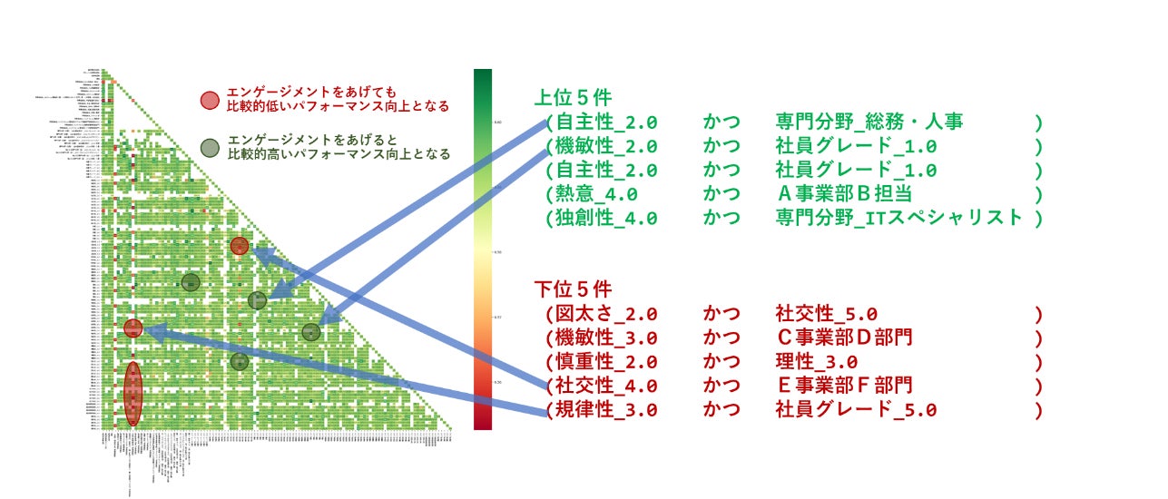 従来の⽅法では、影響の違いが発⽣するセグメントについて、人間が指定して分析を進める必要があったため、仮説⽴案への依存が⼤きいところが課題でした。今回の⼿法により、⼈間による仮説⽴案だけでは気づきにくい、所属組織や社員属性の組み合わせごとの影響度の違いを含めた探索的な分析を⾏うことができるようになります。これによりきめ細やかな打ち⼿を⾒つけて改善に取り組むことが可能になります。