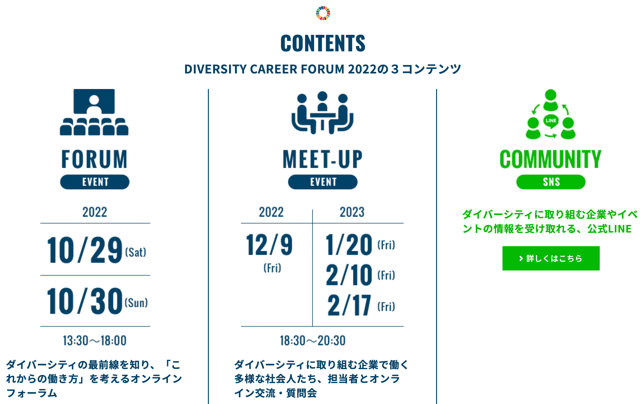 「DIVERSITY CAREER FORUM 2022」では、企業のDE&Iの取り組みや、そこで働くロールモデルとの出会いをたくさん用意しています。本イベントが、マイノリティ性の有無に関わらず、すべての学生・若者たちにとって、自分らしいキャリアの一歩を踏み出すきっかけとなることを願っています。