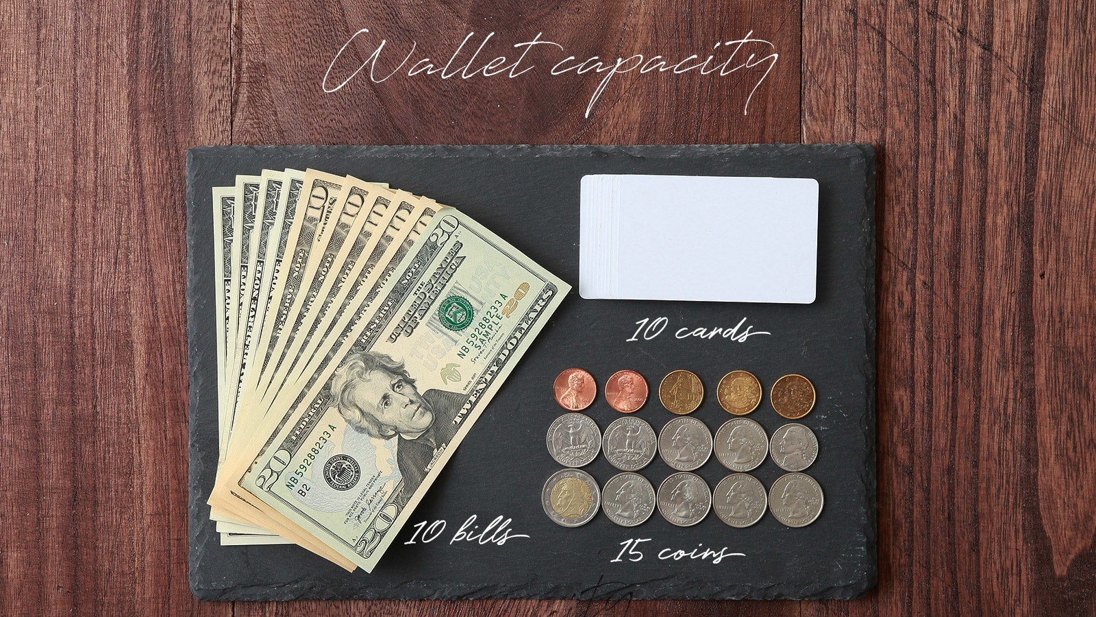 - 【薄さ1.4cm】スリム設計×大容量!カード10枚・硬貨15枚・紙幣15枚収納可能