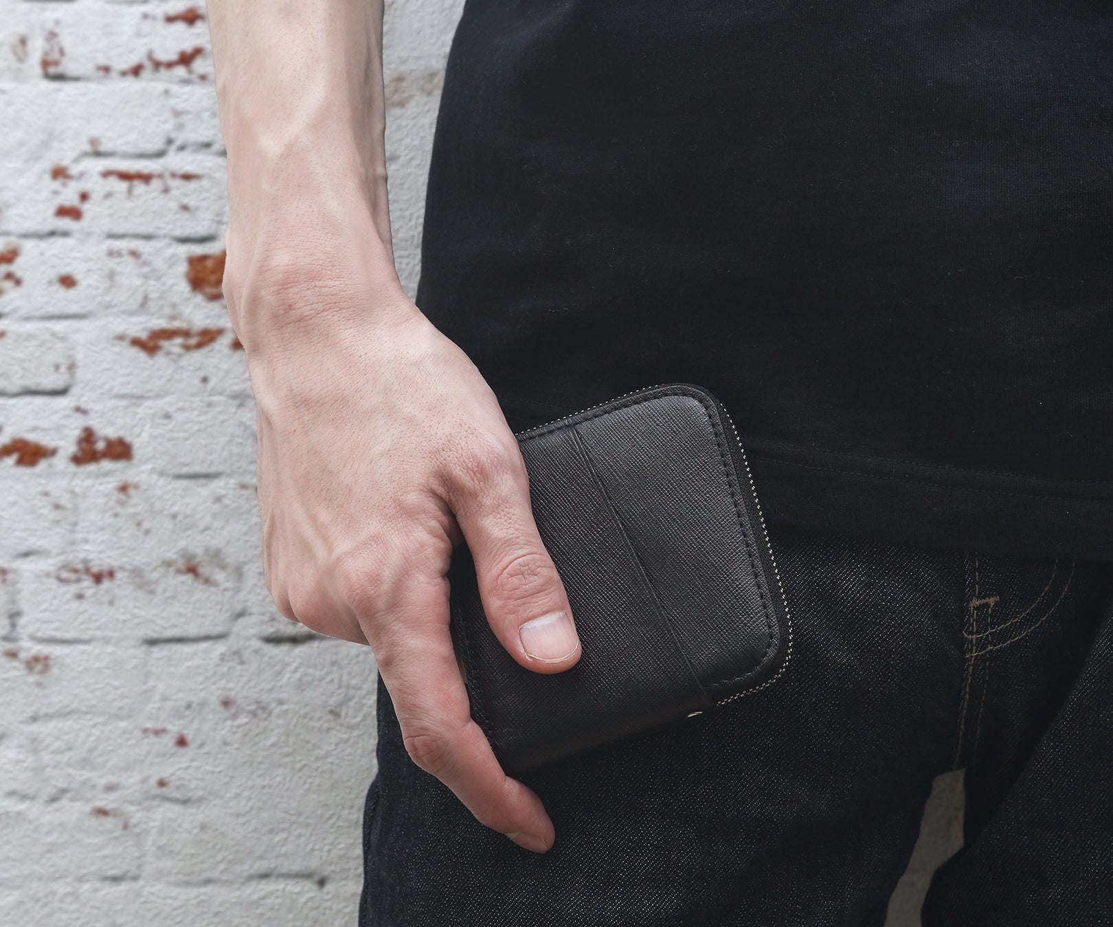 LIFE POCKET製品に起用するサフィアーノレザーは耐久性に優れているため型崩れしにくく、長く美しいフォルムを保つことができます。