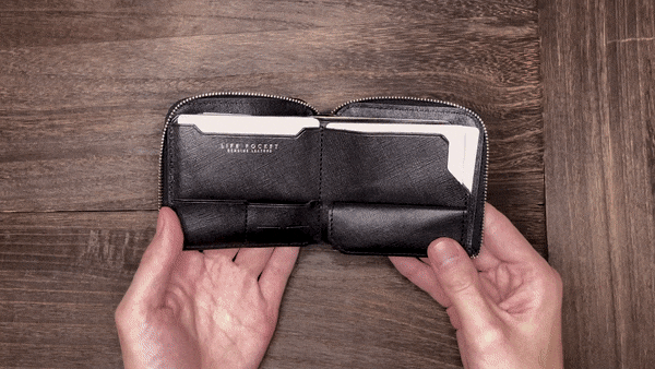 紙幣を折って収納する事や小銭入れの出し入れがしにくい設計ではなく、その矛盾としっかり向きあい、お財布の形や定義から見直しリデザインする事で、使いやすく長財布からの移行も安心できる収納デザインを追求しております。