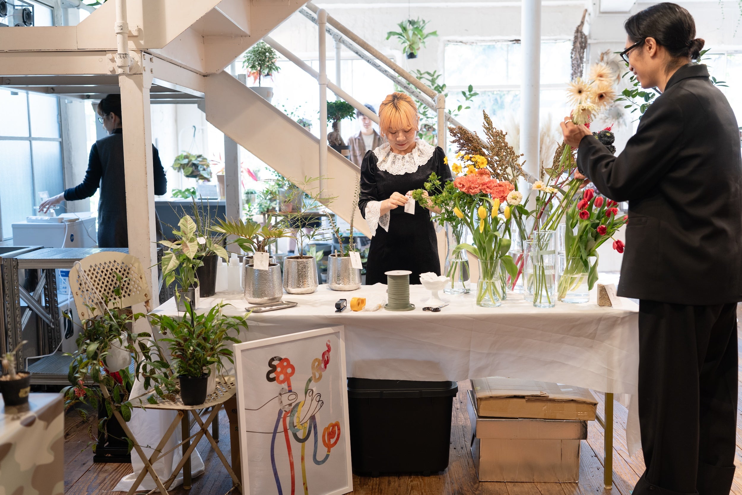 会場は表参道駅から徒歩7分ほどの「ライトボックス青山」。1階と2階のスペースをフルに使用して、個性豊かな植物やお花のショップが並び、大人からこどもまで楽しめるワークショップも開催しました。