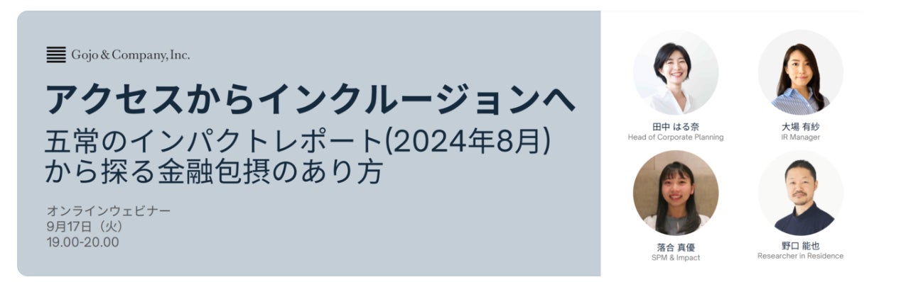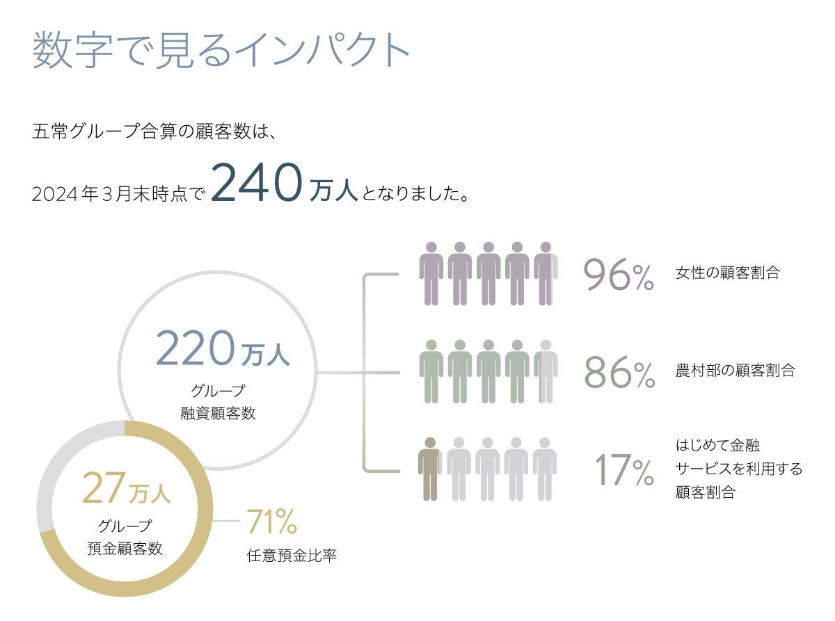 五常・アンド・カンパニー株式会社(代表執行役:慎 泰俊、本社:東京都渋谷区、以下「五常」) は、インパクトレポート(2024年8月)(以下「インパクトレポート」)を発行しました。
