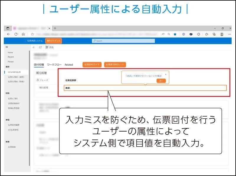 今回、情報セキュリティへの制度⾯・技術⾯の対応を担う総務・IT業務部では、社員の働き⽅に直結する組織として全社的なITインフラ整備や情報利活⽤の取り組みとして、2020年から⽂書電⼦化プロジェクトを推進しています。その⼀環として、約2,000名の社内ユーザーに対し、紙で回章していた会計伝票の電⼦化に向けた伝票回付システムの導⼊を進めることになりましたが、コロナ禍において、遠⽅への移動が制限される中、導⼊前の集合研修やトレーニングが出来ない上に、導⼊直前までユーザー側にシステム移⾏を意識してもらい⾟いといった課題がありました。そこで、ユーザーが操作マニュアルなしで画⾯に向かっても、迷うことなく使い始められる環境を整備することを⽬的に 、⼊⼒項⽬の説明を吹き出しで表⽰する機能や属性に応じて項⽬値を⾃動⼊⼒する機能を備えるWalkMeを導⼊しました 。