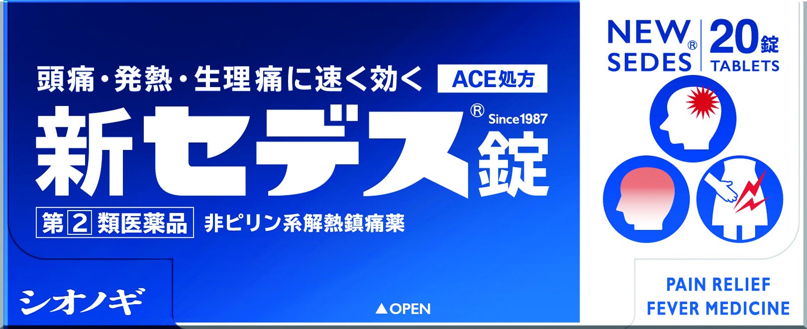 新セデス錠は、解熱鎮痛成分のアセトアミノフェン、エテンザミドをはじめ、アリルイソプロピルアセチル尿素、無水カフェインを配合することにより、すぐれた鎮痛効果をあらわします。 速く効き、胃にソフトな非ピリン系解熱鎮痛薬です。