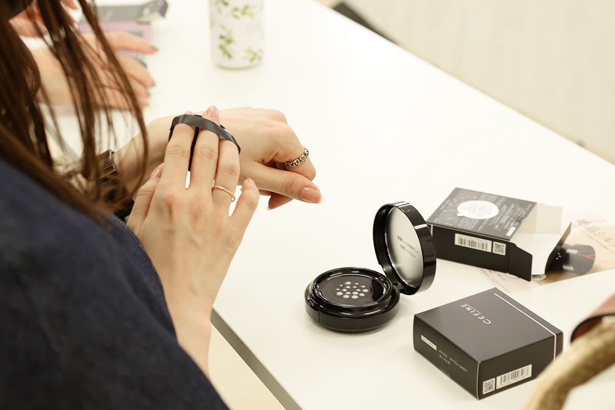 また、CM・映画撮影でご活躍のメイクアップアーティストをお招きし、「シルキーウェットリクイド」の効果的な使い方をデモンストレーション。ご参加の皆さまにも早速、お試しいただきました。