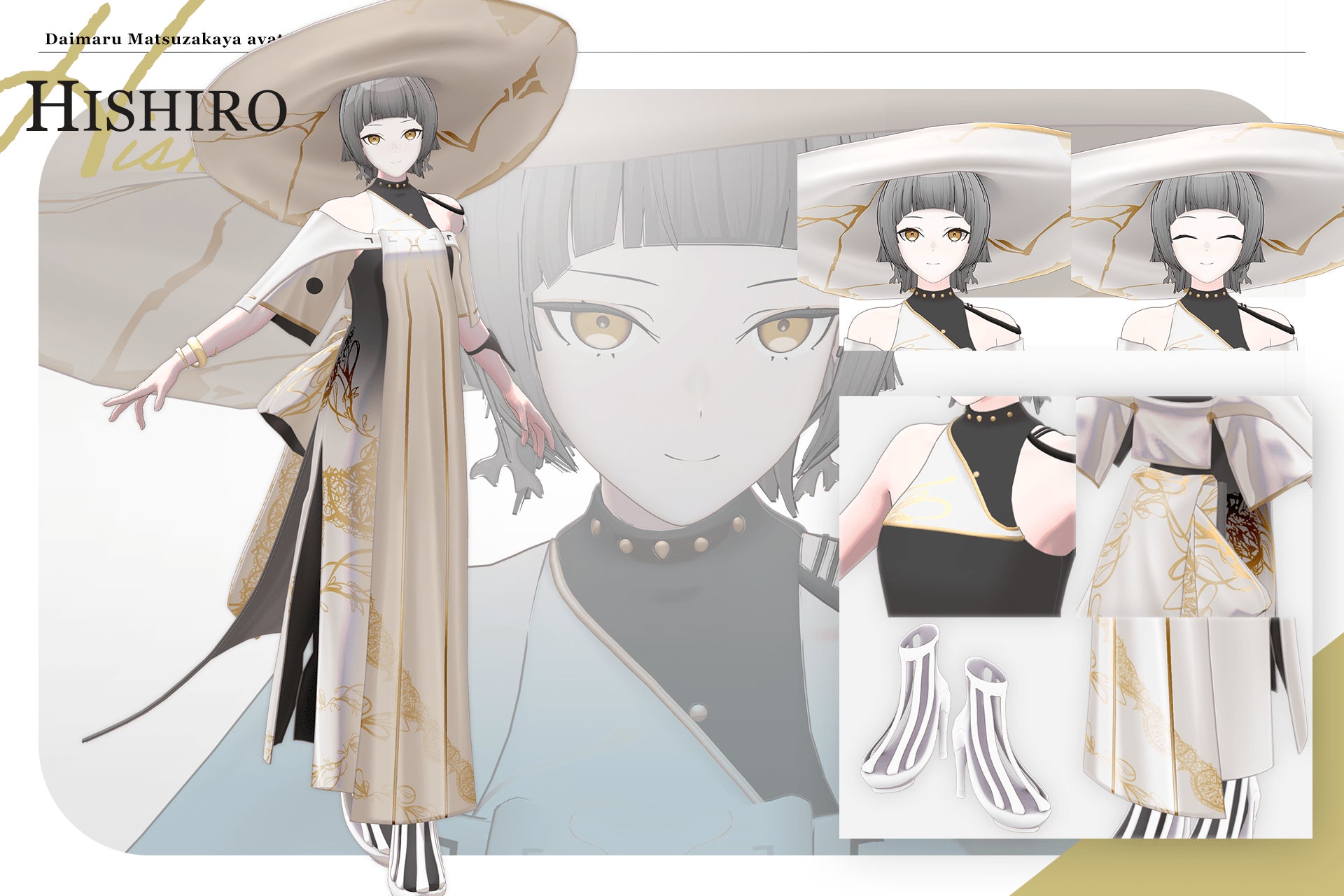 今回もVは、アバターファッションの知見を有することから制作進行を担ってまいりました。デザインセンスやモデリング技術に優れたイラストレーター・モデラーのコラボレーションによって、「正装」をコンセプトにして作り上げた5体のアバターは、いずれも高い完成度となっております。