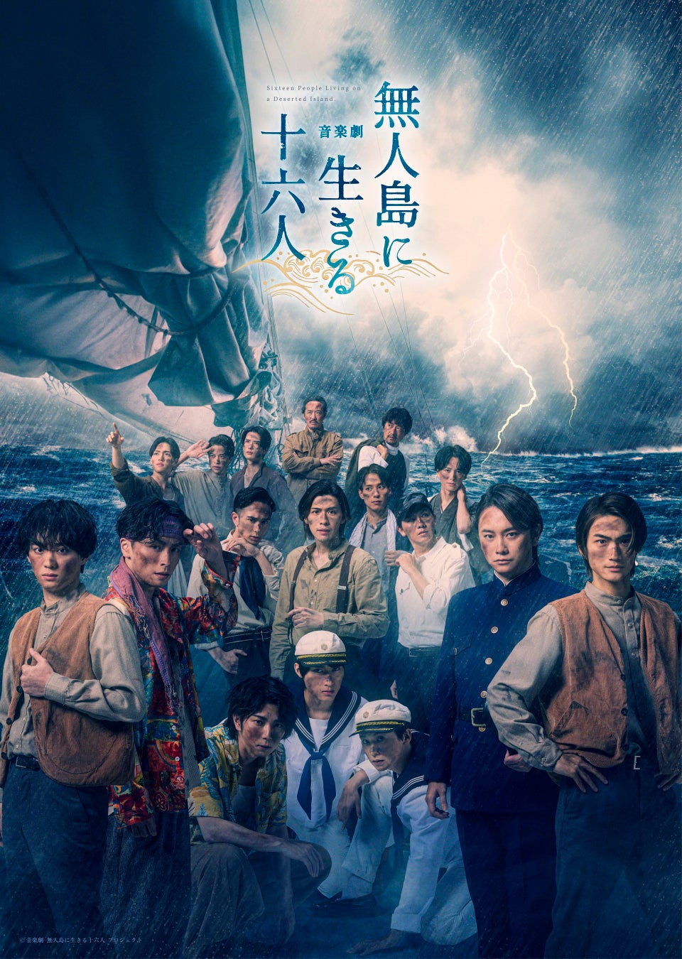 明治時代の実話、感動の無⼈島漂流譚!髙橋颯・福本大晴(Wキャスト)鈴木勝吾主演の音楽劇「無⼈島に⽣きる⼗六⼈」キービジュアル解禁!