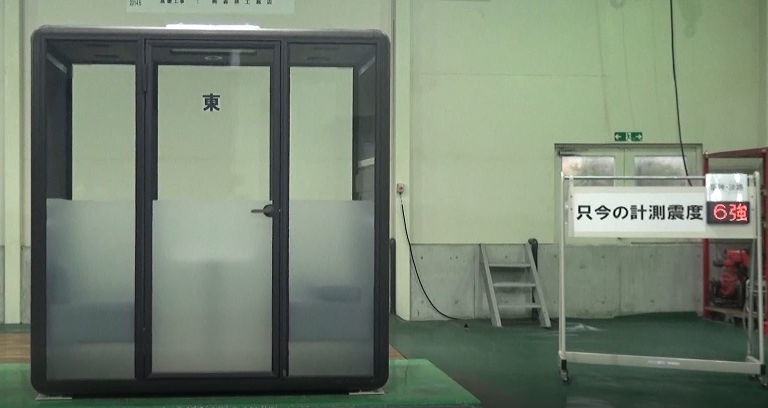 【個室ブース】阪神淡路大震災、東日本大震災相当の地震波形にて転倒試験を実施