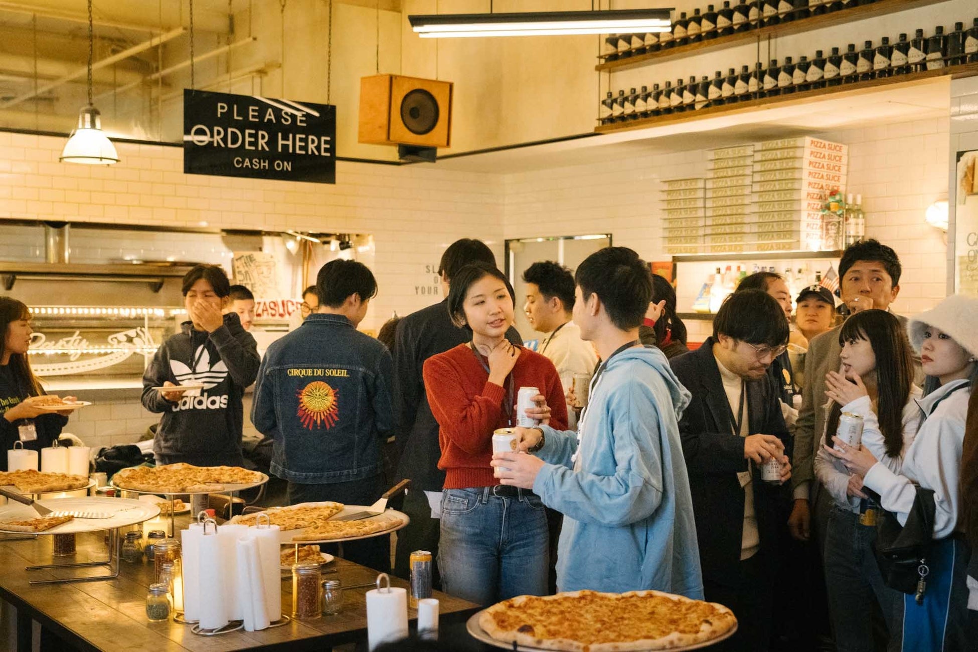 始まりは、ピザを片手にSORACHI 1984で乾杯。