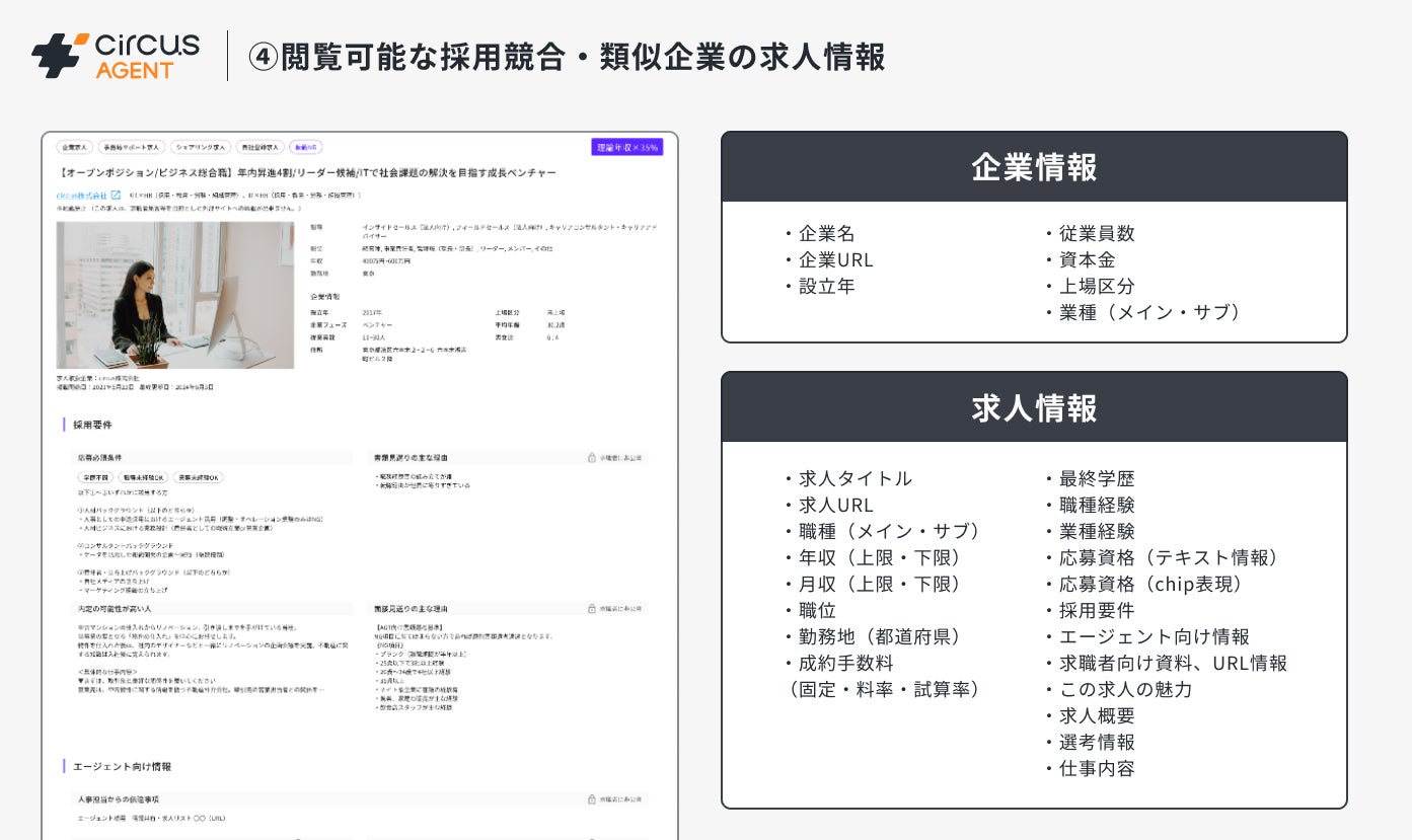 ④ 閲覧可能な採用競合・類似企業の求人情報