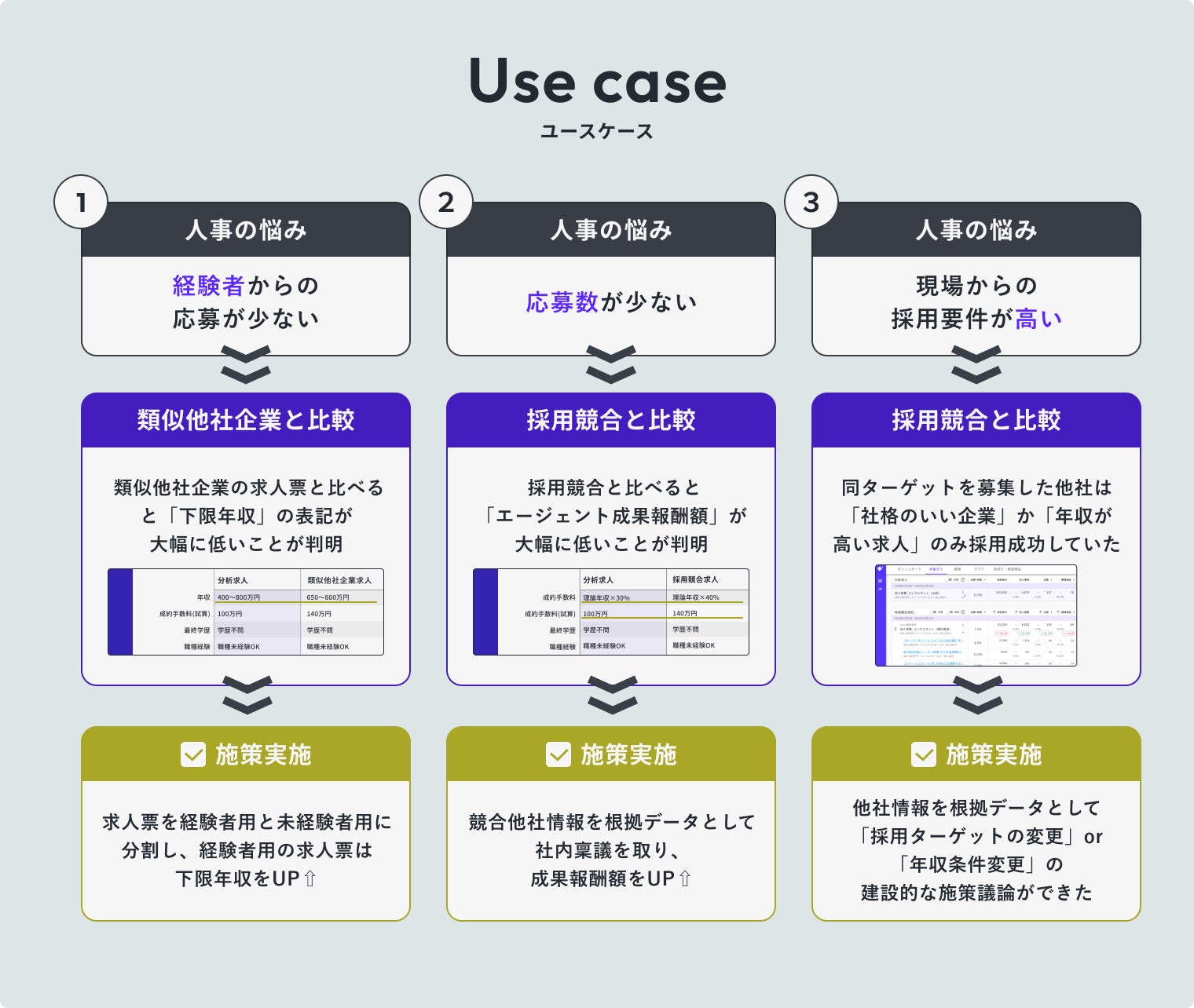 これまで事業競合は把握できていても、採用競合を把握することは困難でした。