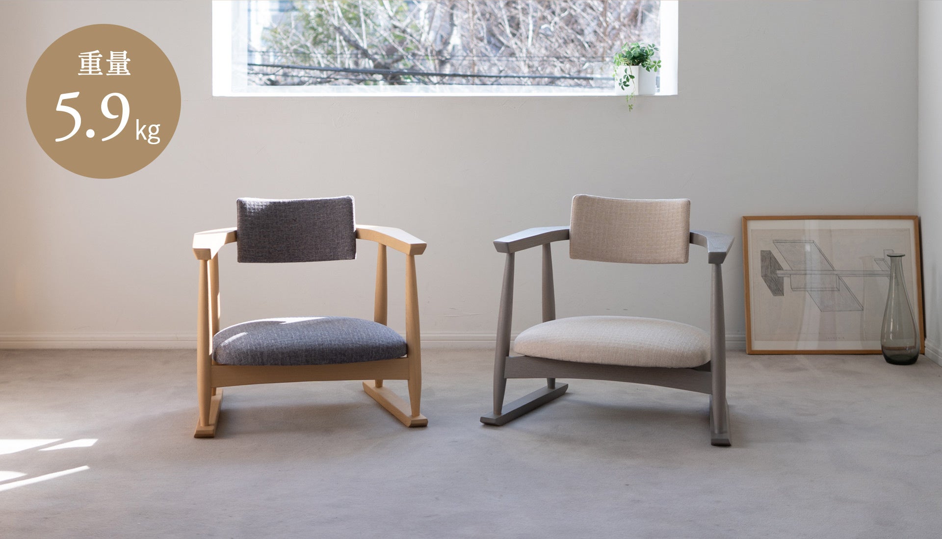 タモ材が作り出すゆったりとしたカーブが、身体に優しくフィット。背面から広がる曲線で、窮屈さを感じさせないデザインです。