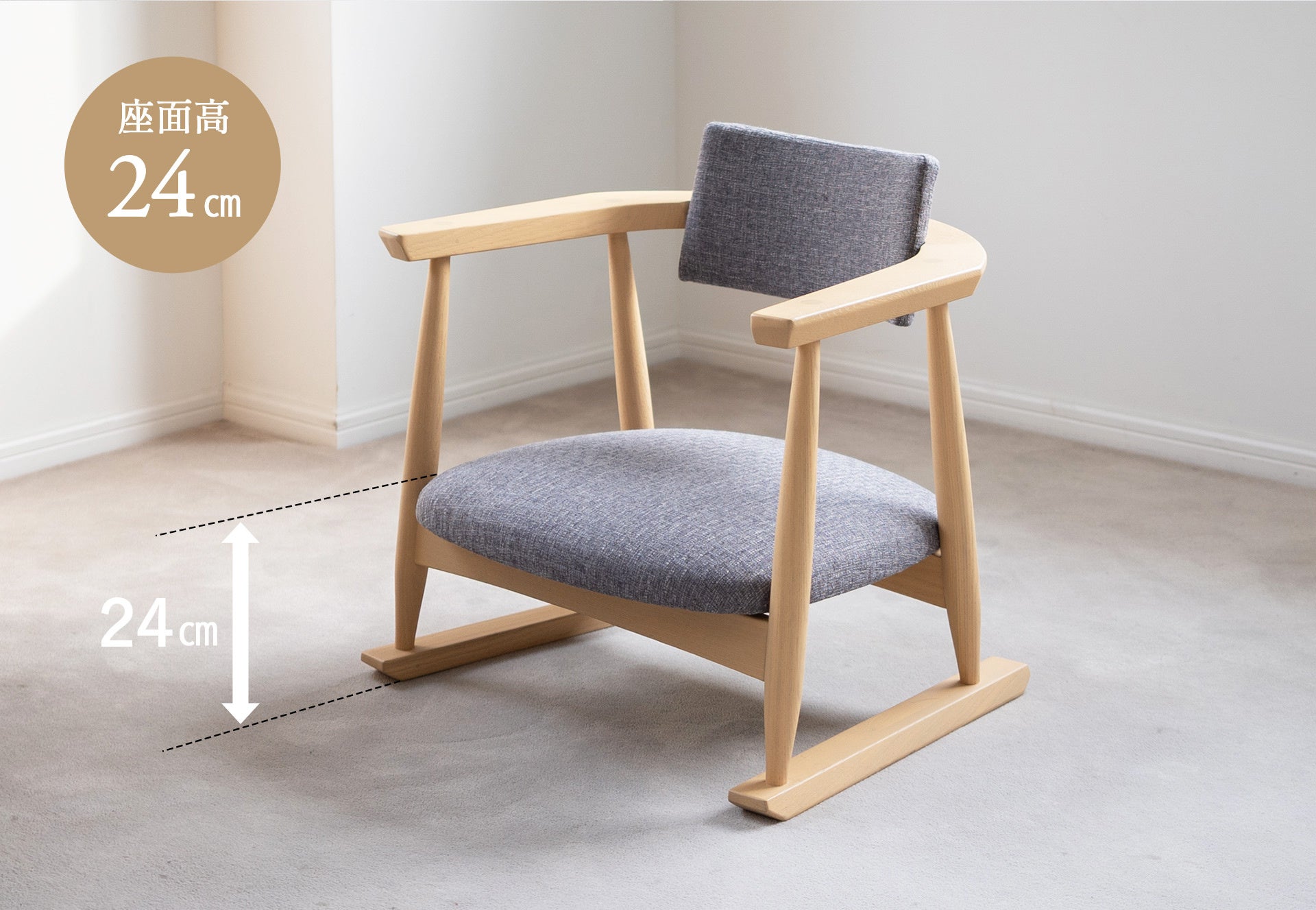 座面高は約24cmと立ち上がりやすい高さ。膝や腰など、一部に負担がかからないように考慮した設計になっています。