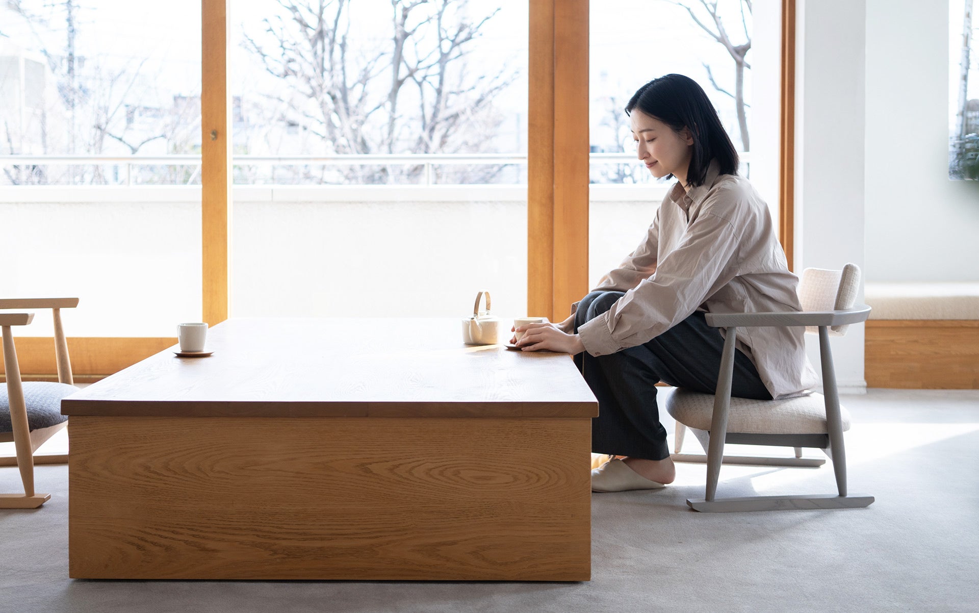 タモ無垢材を使用した“ぬくもり”を感じる低座椅子