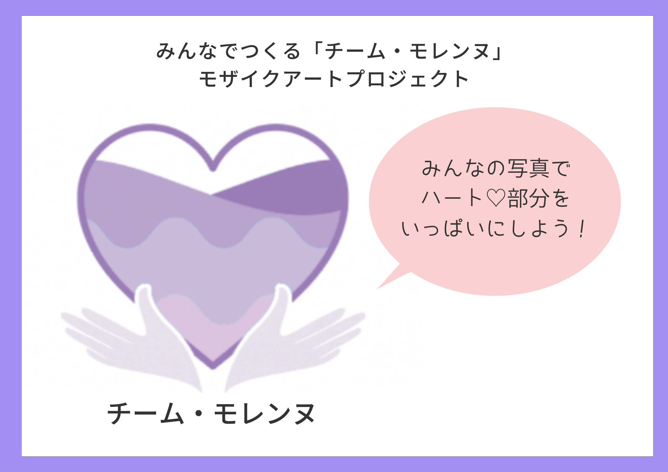 チームモレンヌの立ち上げに合わせて、「チームモレンヌ」モザイクアートプロジェクトを行います。