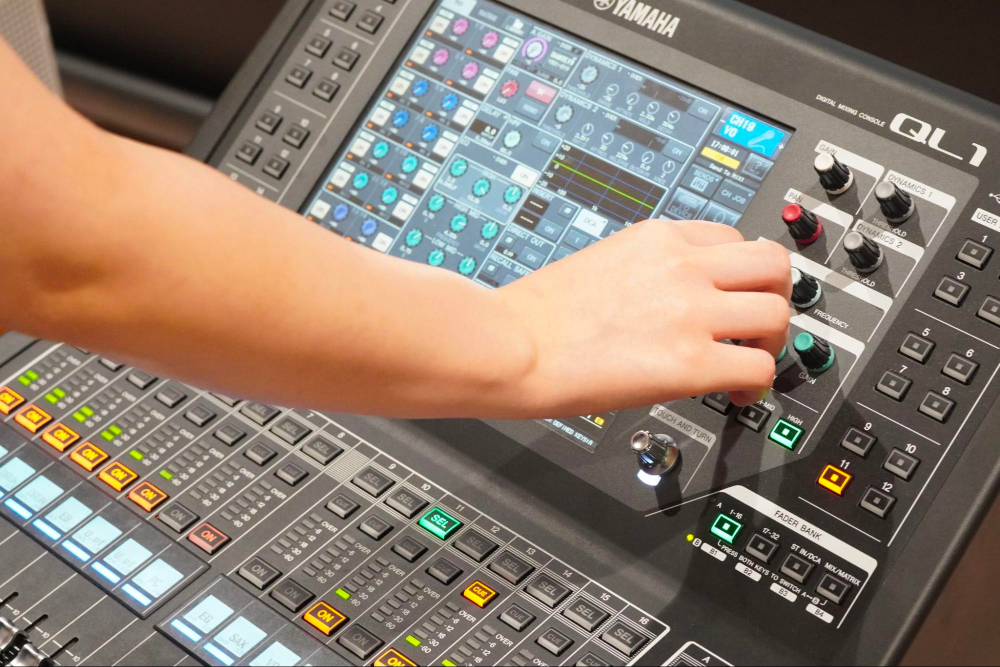 ライブやレコーディングの現場で良質な音を生み出す「PA(Public Address)」という仕事を通して音楽の存在に迫っていきました。生徒の皆さんは実際に音響機材に触れ、PAが行なうミキシングにも挑戦していきました。