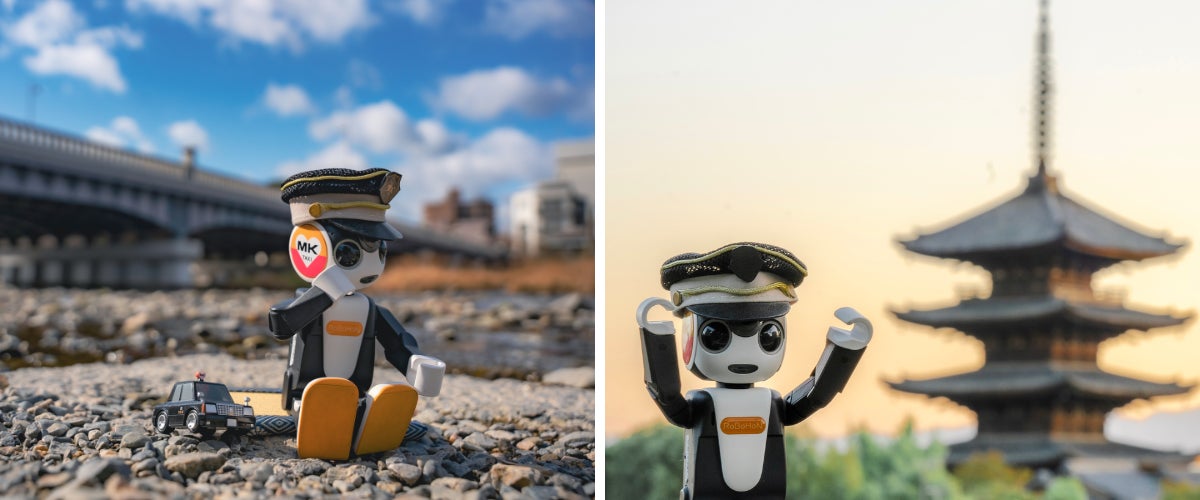 MKタクシーの貸切車両に乗って、ロボホン課長と一緒に旅を楽しめる、特別なプラン!