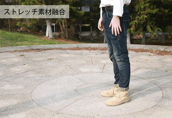 しっかりした本格的なジーンズなのに、ストレッチが効いているため、窮屈感はゼロ!しゃがんだり、座ったり、走ったりしてもストレスを感じなく、膝の屈伸が楽チン。運動する時、バイクや自転車に乗る時も、快適な穿き心地を提供してくれます。