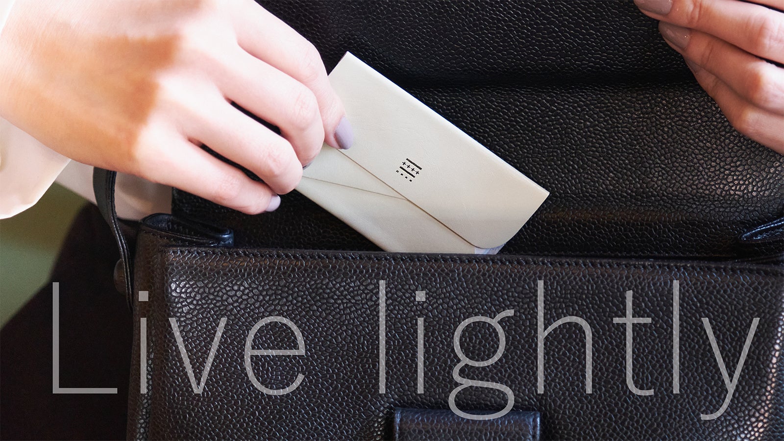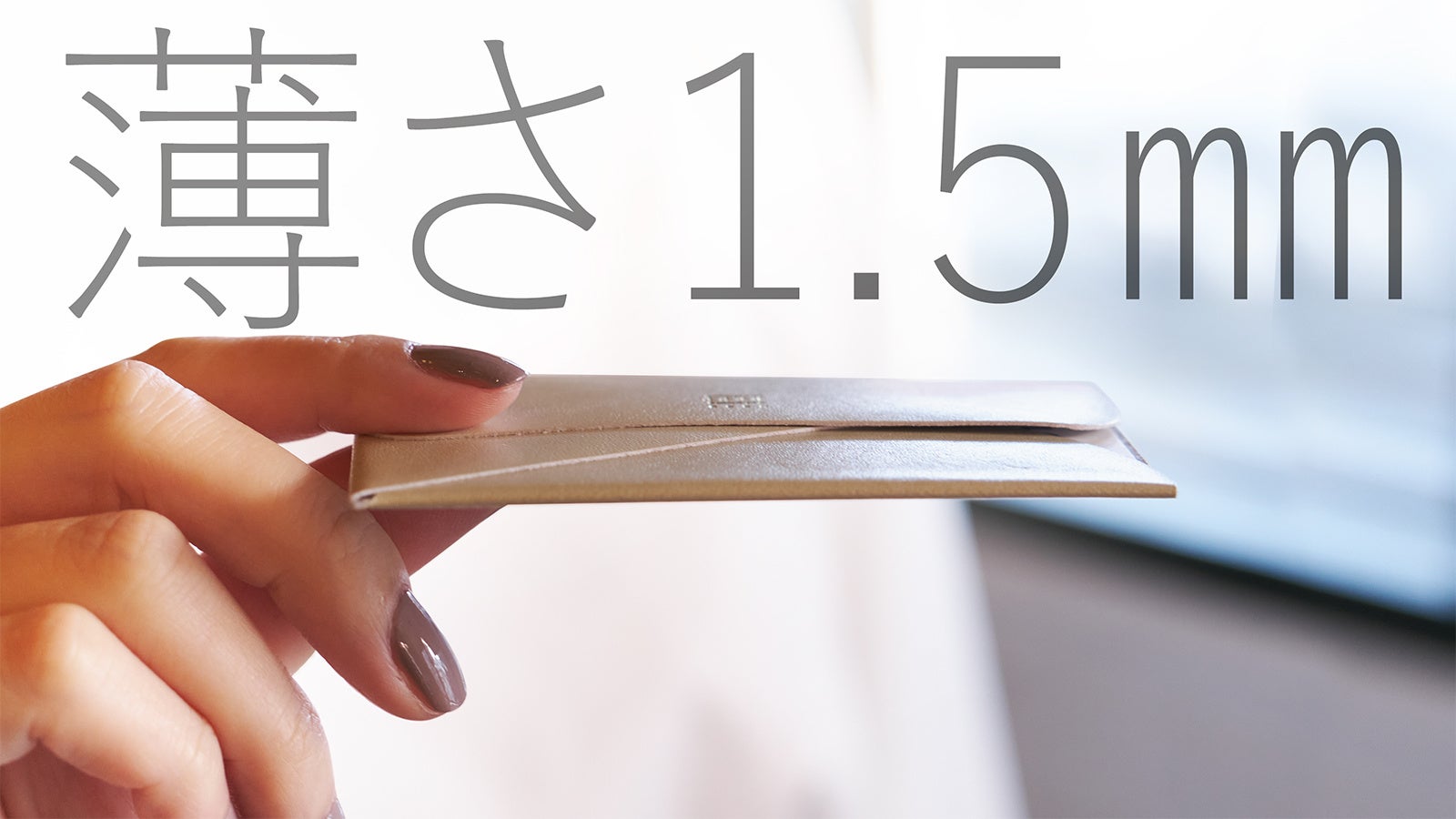 紙のような本革を極限まで薄くした結果、レザーの薄さはわずか0.5mm。本体もわずか1.5mm。どこにでも収納できる紙のような薄さです。