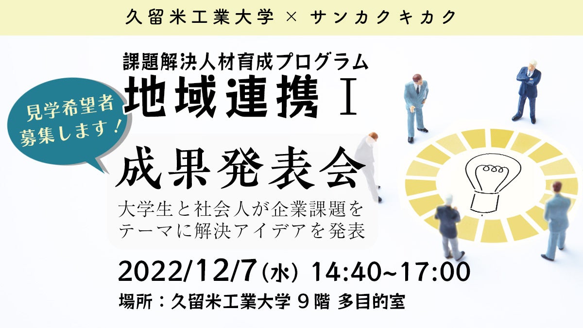 当日取材募集。産学連携で課題解決人材を毎年育成。大学生と地域の社会人が企業課題をテーマに解決するアイデアを発表。
