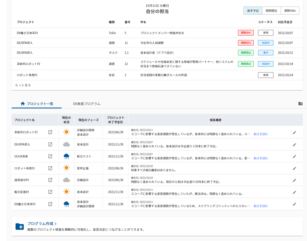 プログラムマネジメント機能は、今後、現在のPROEVER 機能を基準にプロジェクトの状況項目を追加する予定です。