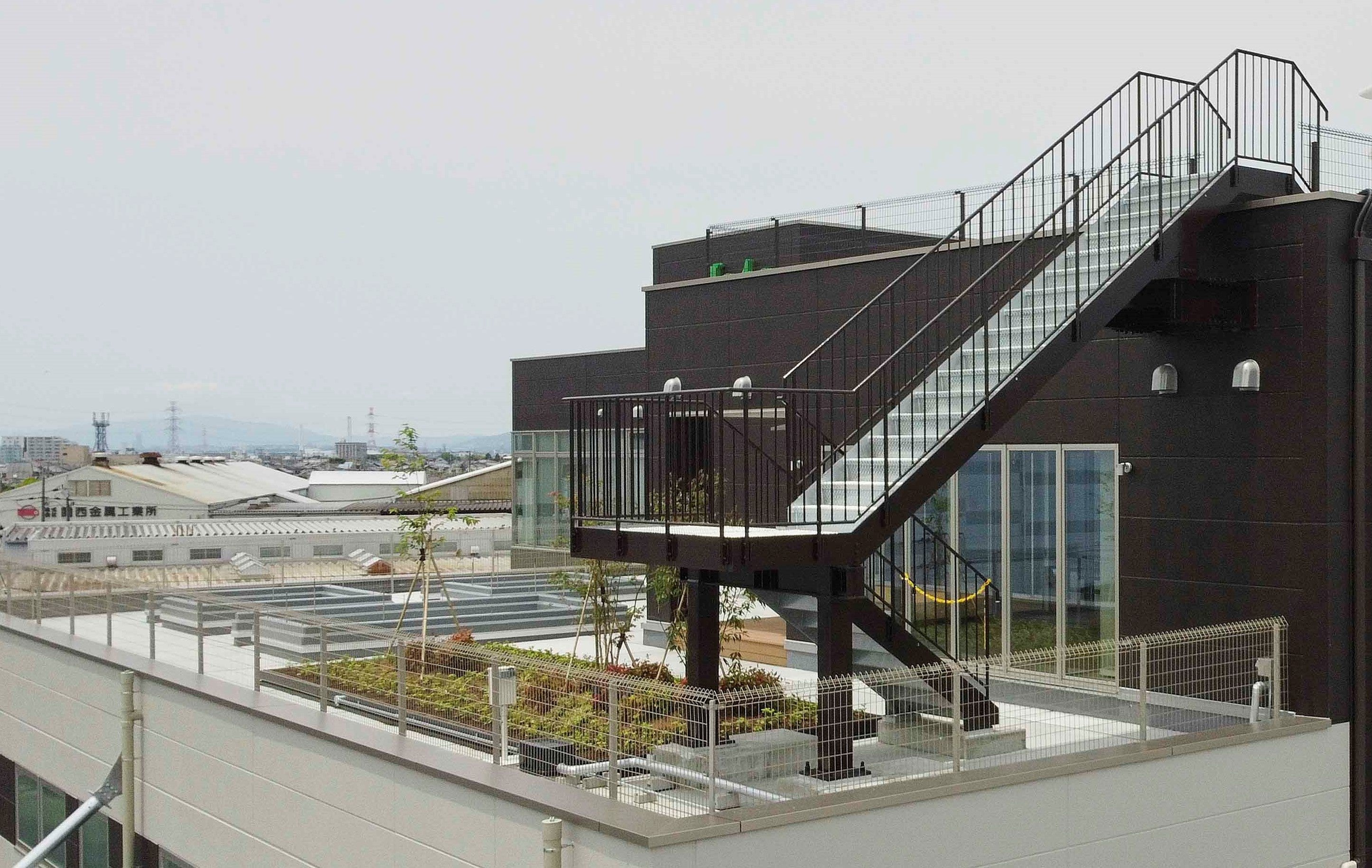 試験機の使い勝手や研究員の動線など、施設のレイアウトは住友林業の研究・技術開発を担う筑波研究所を参考に設計。社員の憩いの場所として屋上の一部を緑化するなど、両社の協業によるシナジーを実現しました。