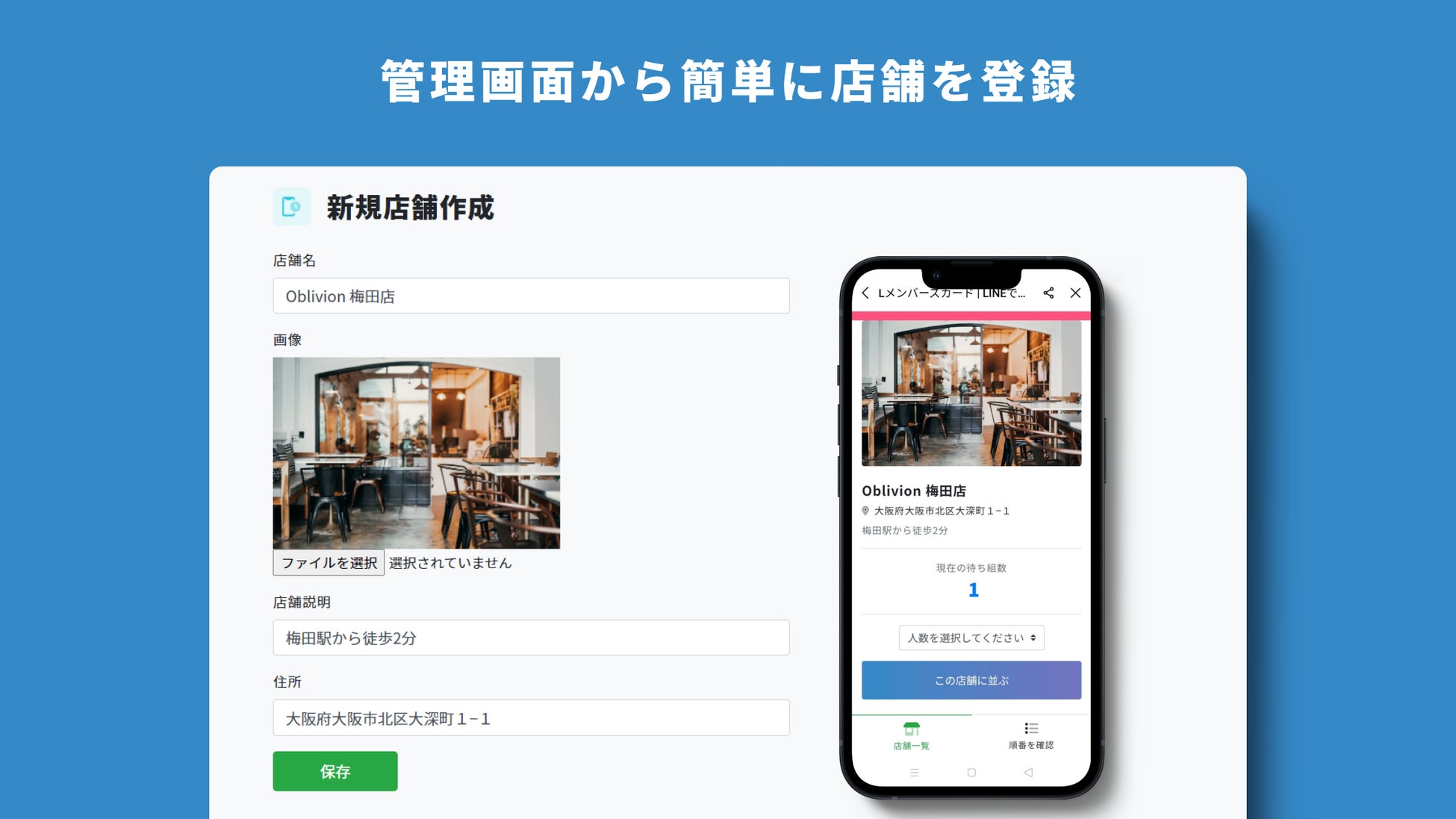 - 管理画面で順番待ちの状況をリアルタイムに確認