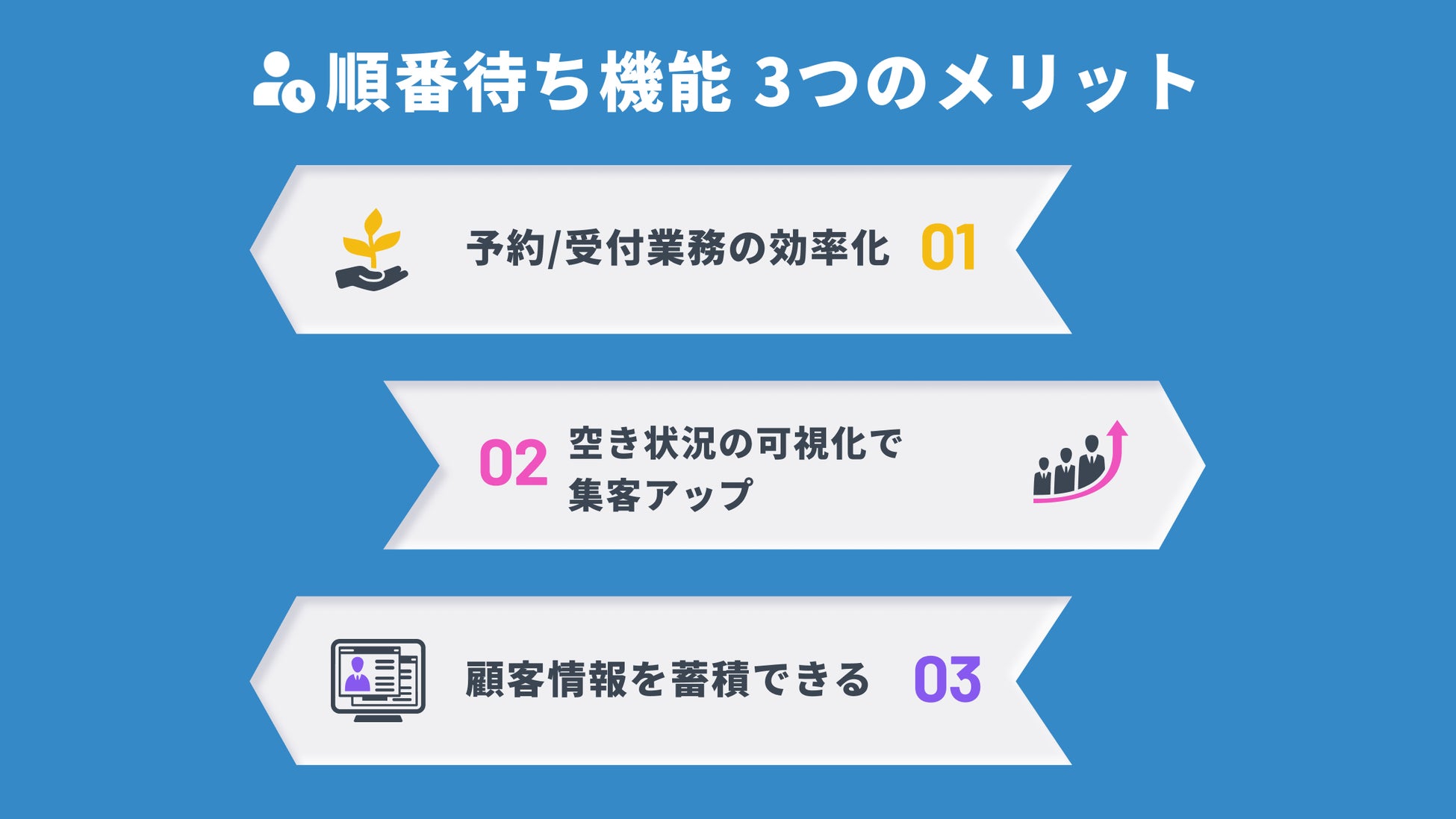 店舗やサービスのLINE公式アカウントに順番待ち機能を持たせることで、予約・受付業務の効率化、お客様のストレス軽減、顧客情報の蓄積が可能です。