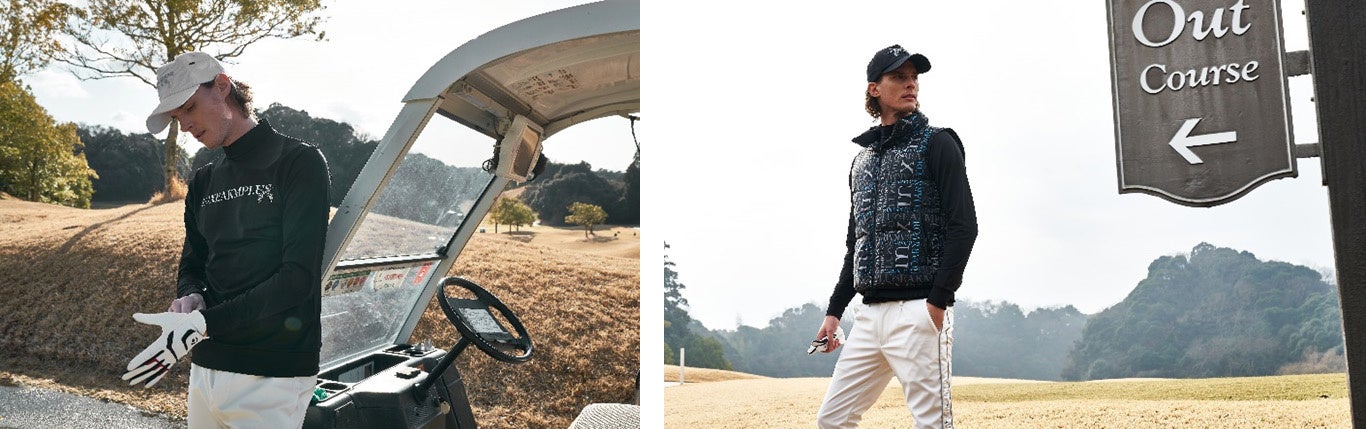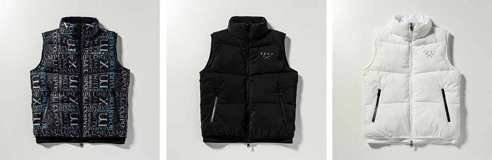 コラボレーションアイテムは、roarのアイコン「クロスガン」をゴルフ仕様にアレンジしたオリジナルロゴを採用。LUXEAKMPLUSが放つラグジュアリー感が際立つデザインがミックスされ、オトナに向けたラグジュアリースポーツスタイルを提案しております。機能面では、快適なプレーがしやすいよう保温性、ストレッチ性が高い秋冬アイテムがメインで、中綿ベストやブルゾンなど計14型をリリースします。