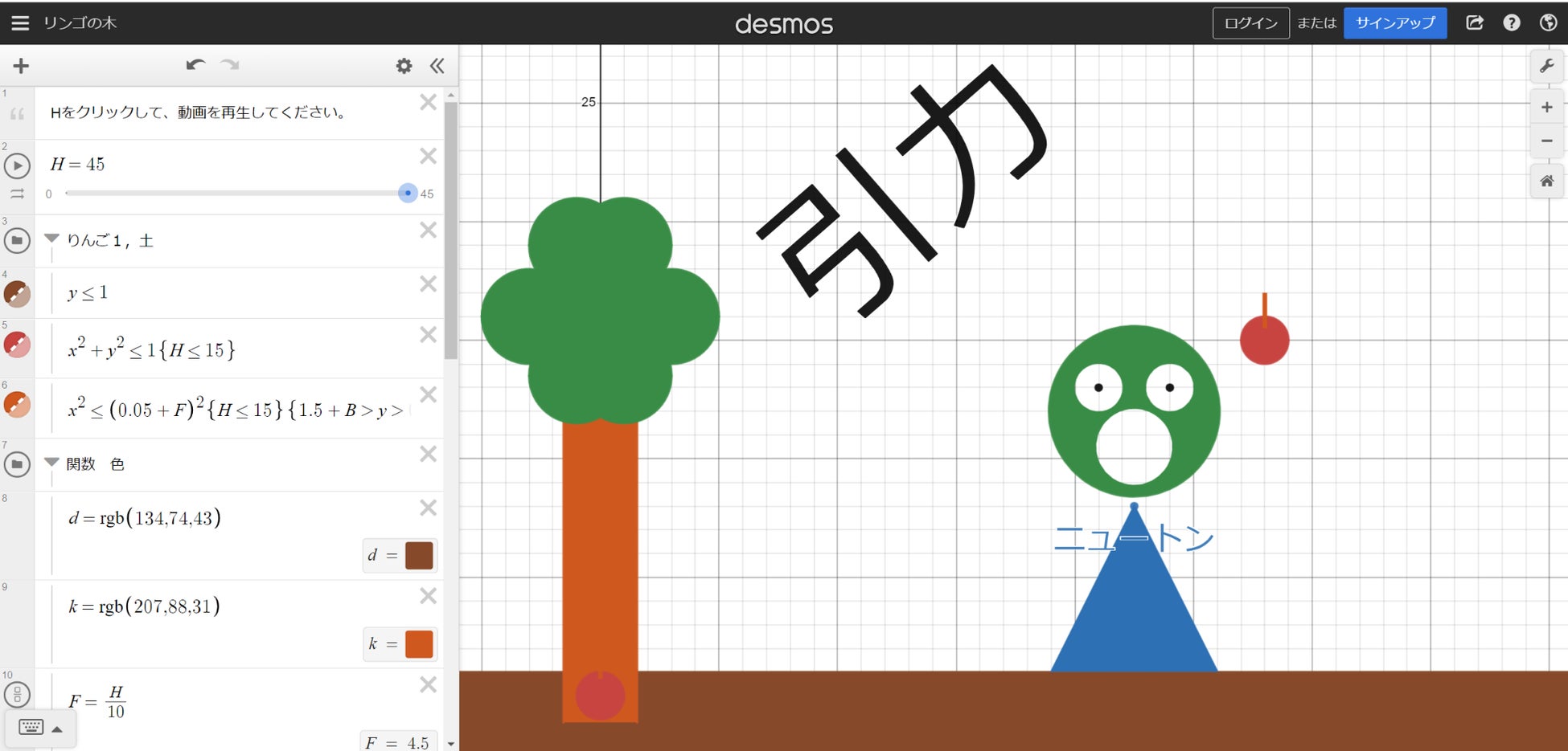「グラフ計算機”desmos”」の画面は:https://www.desmos.com/calculator?lang=ja