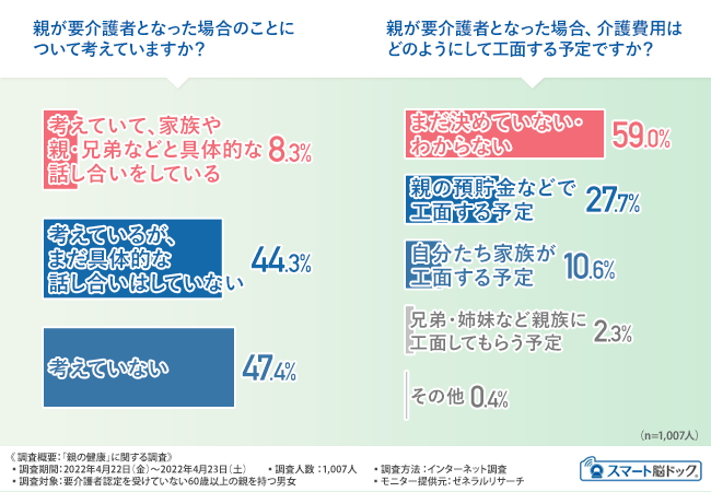 - 【親が要介護者になった時のこと】「考えていない」が半数近い結果に