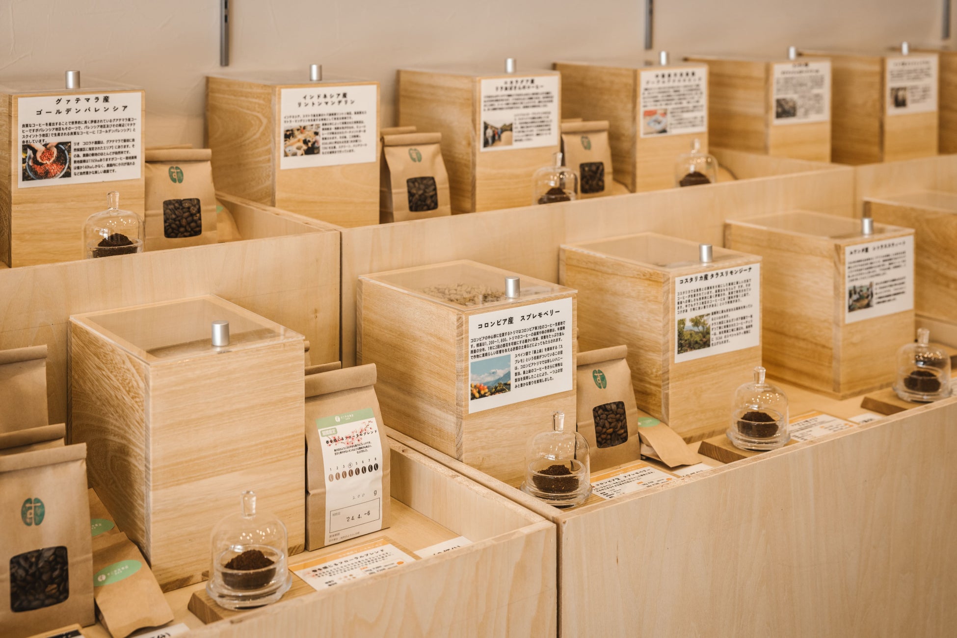 「すこやか商店焙煎所」は、自家用の焙煎機を設置し、スペシャティコーヒーやオリジナルブレンドを中心に25種類のコーヒー豆を常備しています。コーヒー豆は生豆の状態で店内に展示し、お客様の注文を受けてからその場で焙煎しています。焙煎の度合いも浅煎り、中煎り、深煎りのように細かく調節可能。お客様の好みに合わせたコーヒー豆を提供できます。