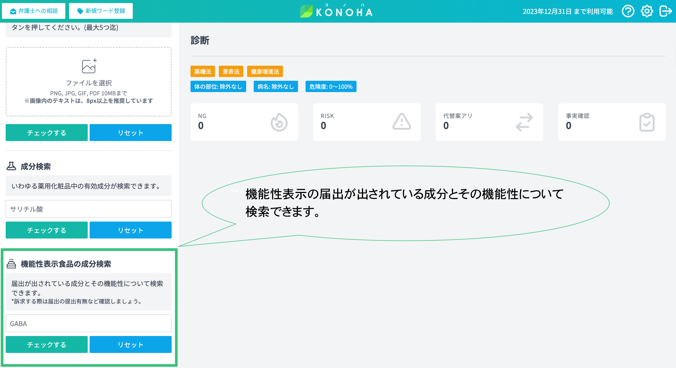企業様のお声をもとに、コノハでも機能性表示食品に関するチェックができるよう