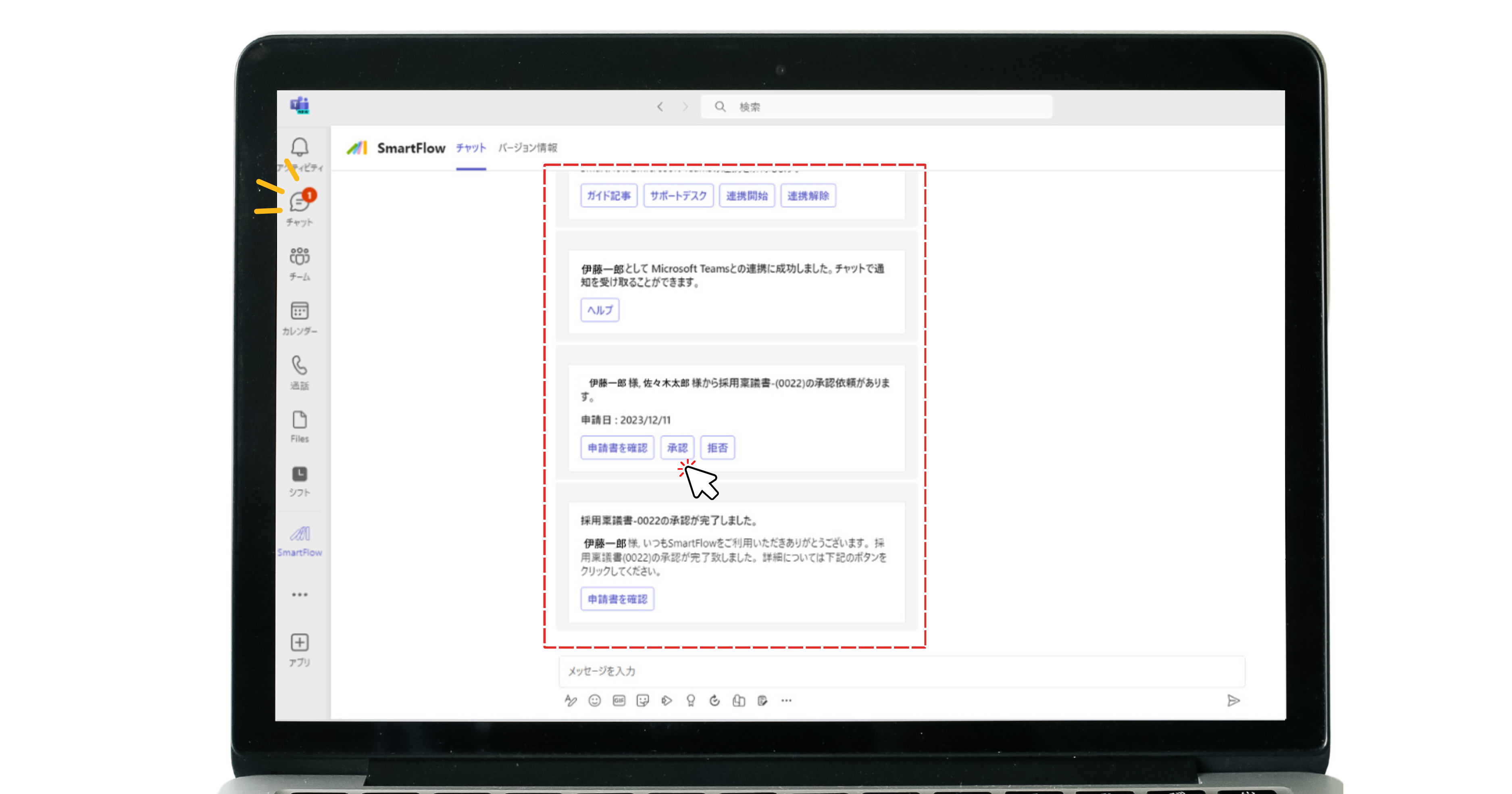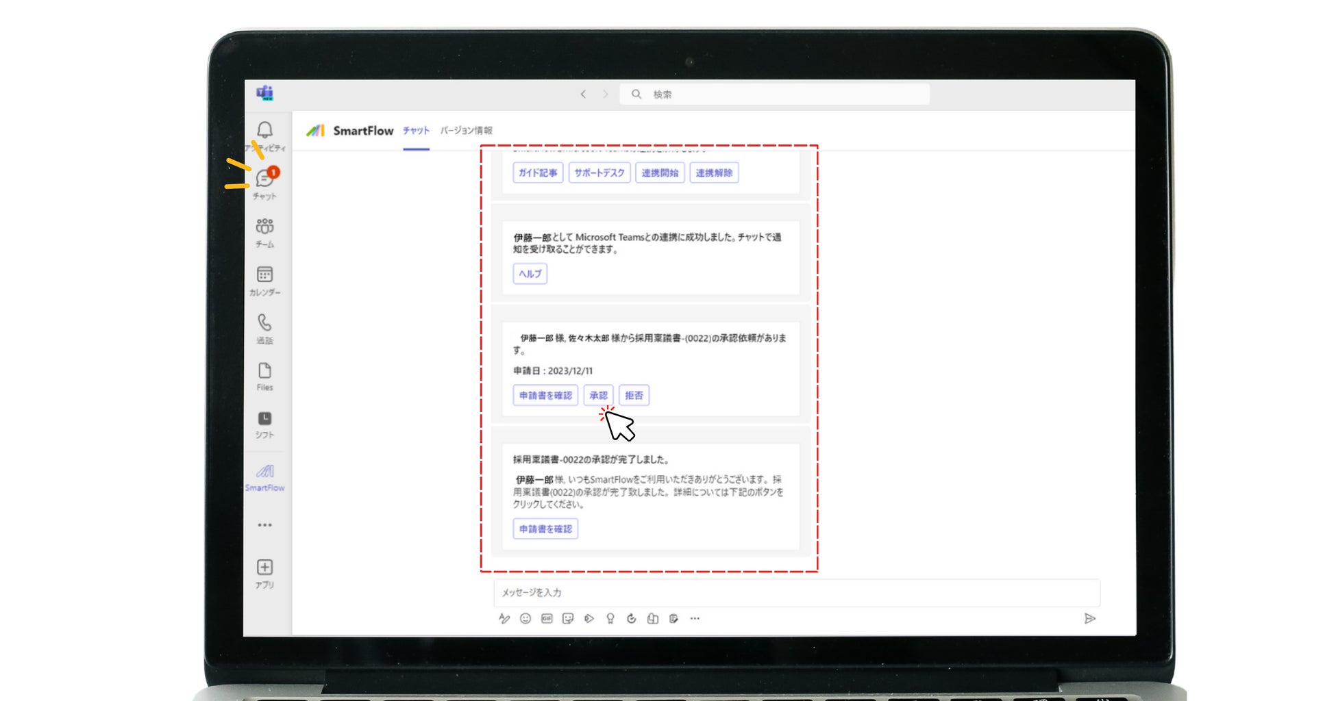 今回導入された新機能により、Teamsで個別の承認通知や依頼内容を直接確認できるようになった他、通知からは承認・拒否の操作も可能となり承認者が