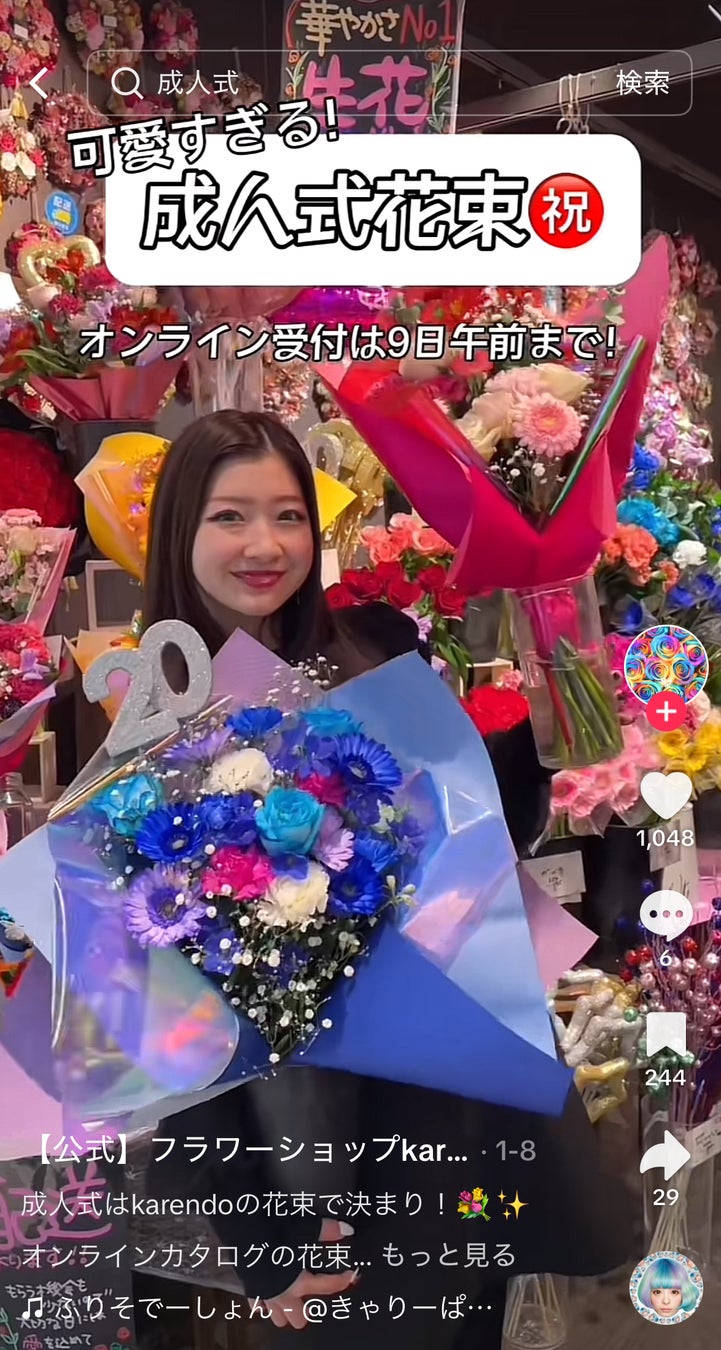 コロナ禍により成人式や卒業式が中止された影響もあり、2023年頃から「成人の日」や「卒業式」に花を贈る文化が全国的に急速に広がっています。 特にInstagram、X(旧Twitter)、TikTok などのSNSが若年層の購買意欲を刺激し、花贈りが新たなトレンドとして定着しつつあります。