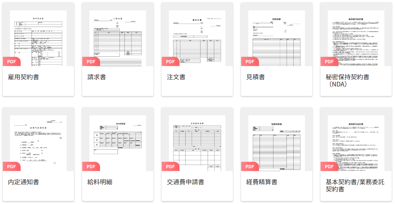 履歴書、見積書、請求書など、様々なシーンで役立つPDFテンプレートが無料でダウンロード可能です!現在のドキュメント業務をデジタル化する際、必要となる書類のテンプレートを活用することでデジタル化を推進致します。