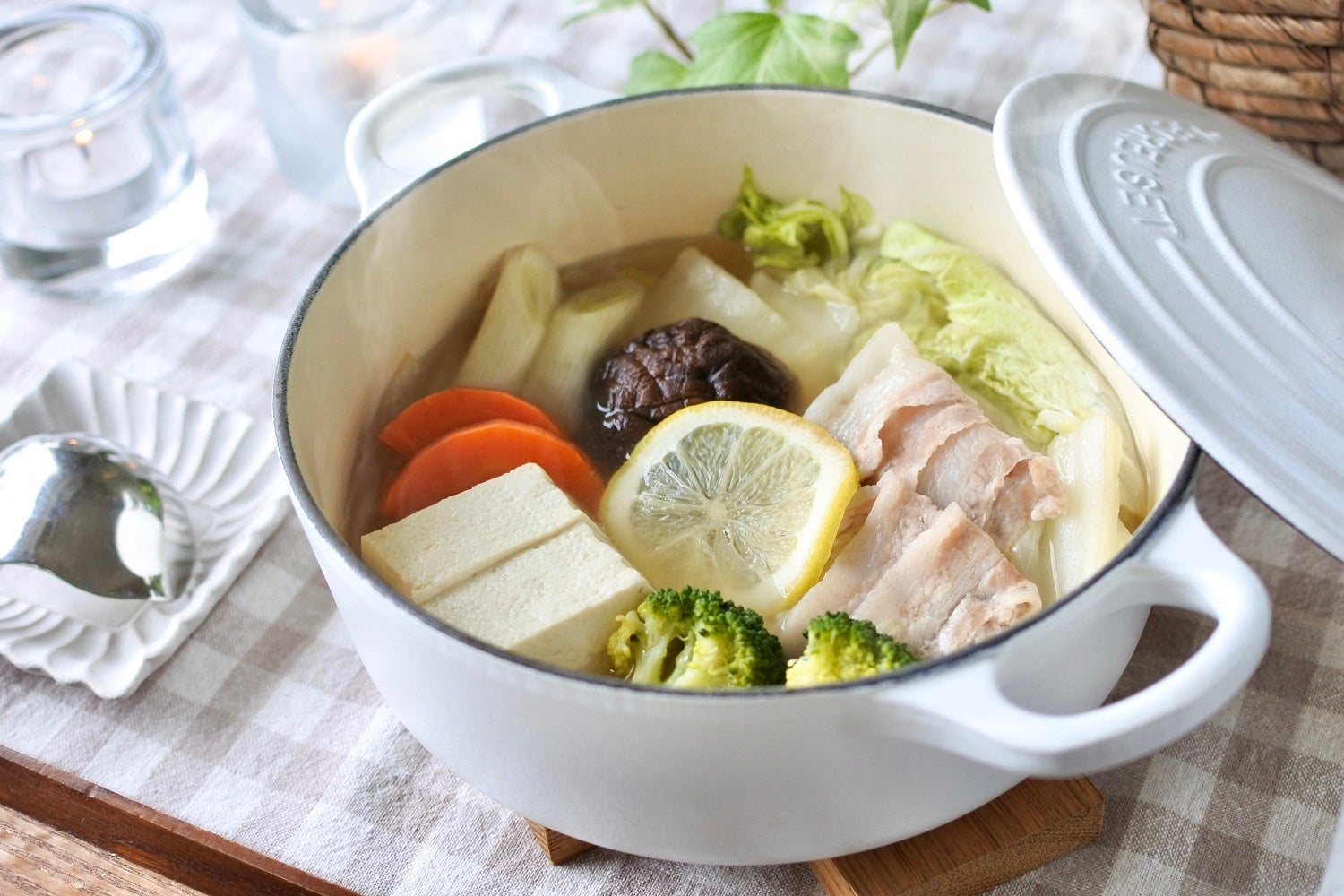 レモンのさわやかな風味と、牡蠣とチキンスープの旨味を合わせた鍋つゆの素です。豚肉のおいしさを一層引き立てる味わいです。 レモンの爽やかな風味ではじまり、加熱を続けながら食べ進めると豚肉の出汁がつゆに流れ出て風味が変化。 飽きることなく最後まで美味しい鍋つゆです。