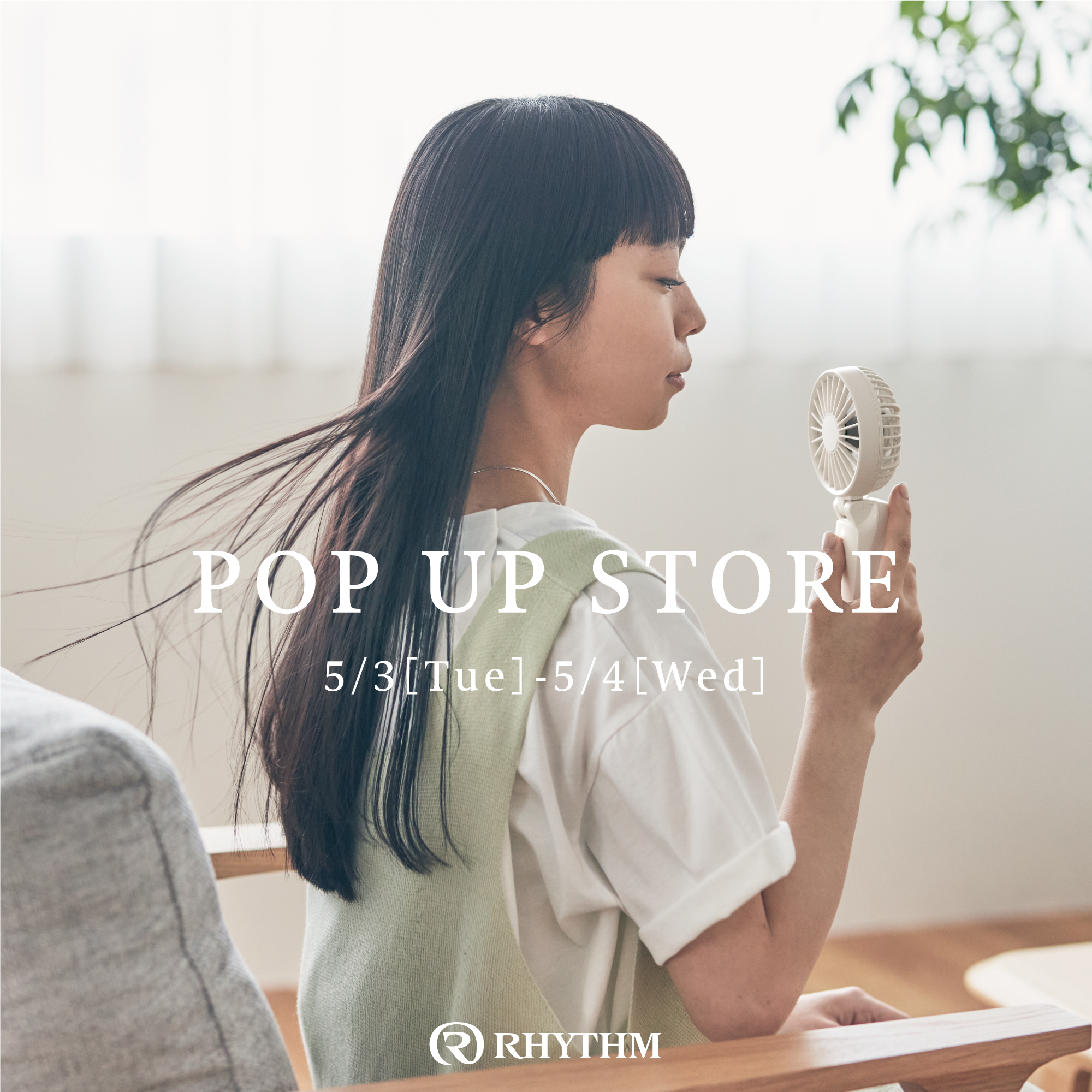 「RHYTHM POP UP STORE」では、これからの季節に最適なリズムのモバイルファンシリーズや、持ち運びに便利な時計、人気のクロックをご用意しております。