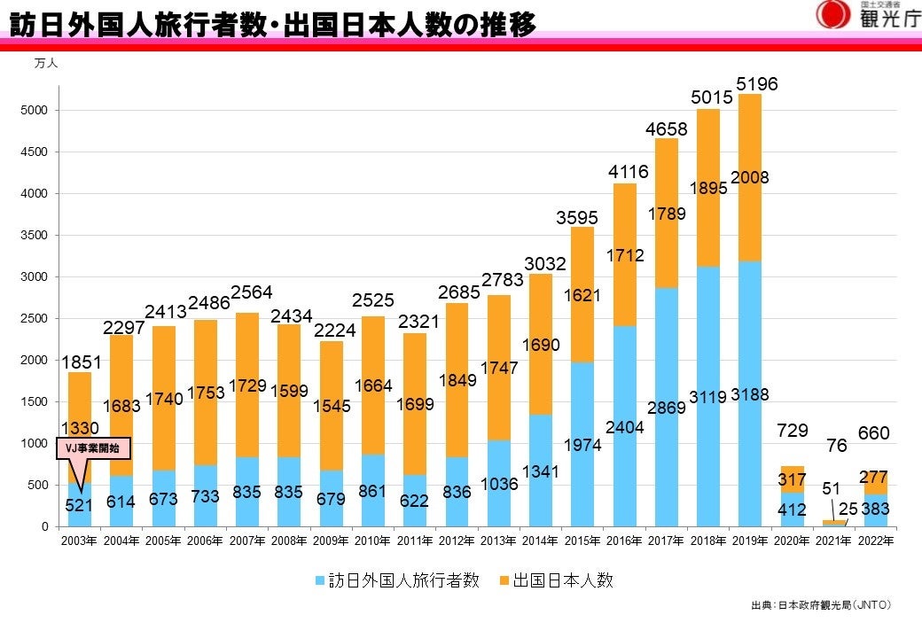 ここ3年はコロナの影響で訪日外国人が激減しました。