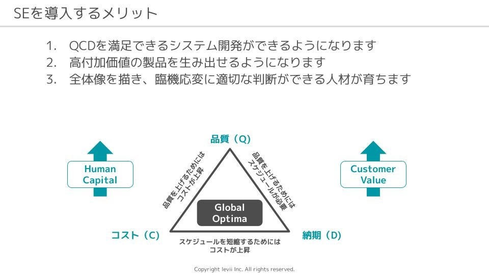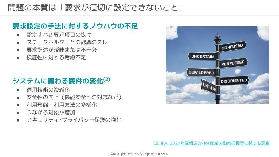 最近、お客様からレヴィに寄せられるご要望や課題感にはシステムズエンジニアリングに関連するものが増えていきました。そこでレヴィでは、システムズエンジニアリングを上手に実践したい人向けのサービスを構築し、「モデリングと対話で実践!ちょうどいいSEサービス」と名付けて提供を開始しました。