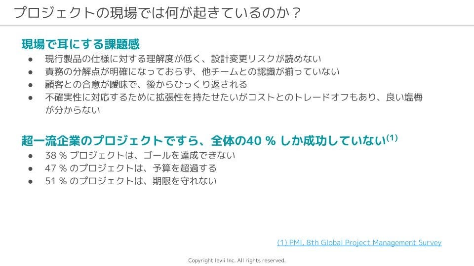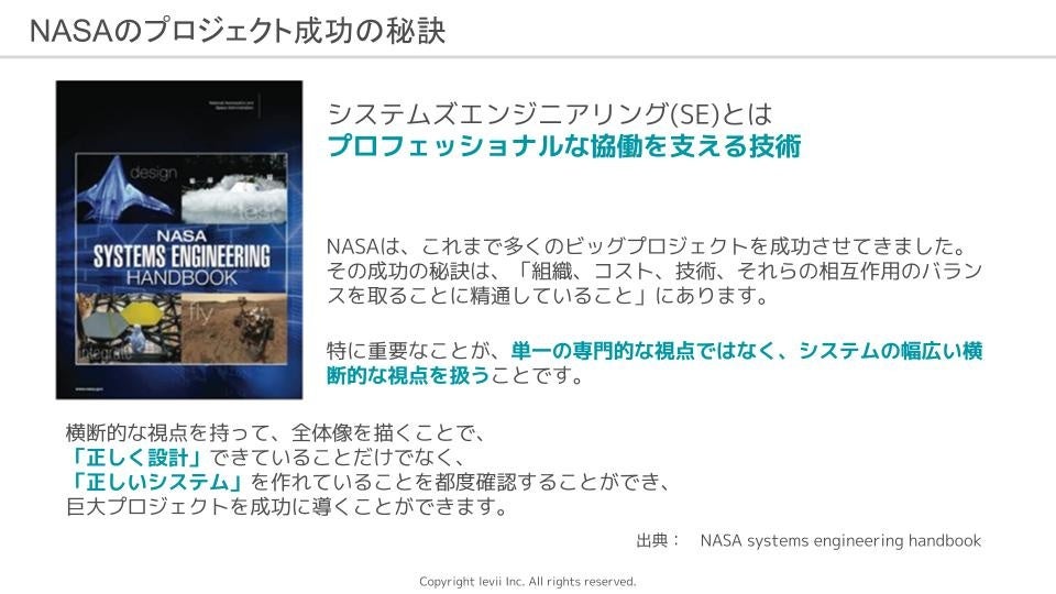 そのような場面に極めて有効な手法の一つがシステムズエンジニアリングであり、株式会社レヴィにはシステムズエンジニアリングのプロフェッショナルが揃っています。