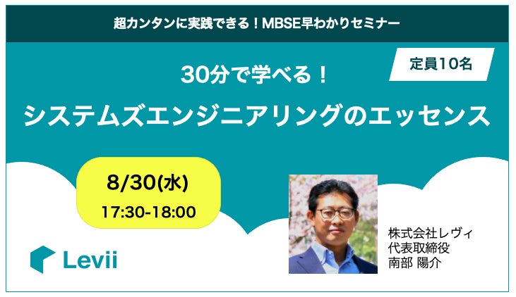 本リリースに関連して、30分でシステムズエンジニアリングのエッセンスを学べる無料のセミナーを開催します。
