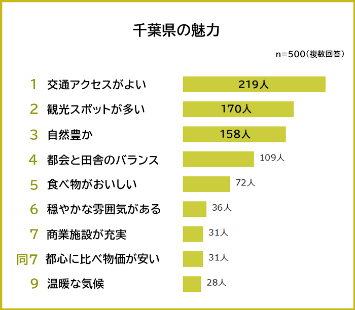 ・千葉県の魅力1位は「交通アクセスがよい」