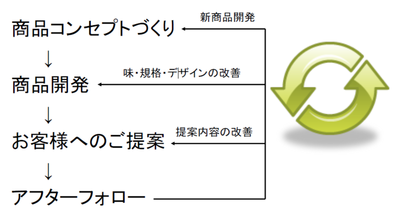 山中社長は多くのセミナーにご参加されたり、勉強会会員になられたりと積極的に情報収集をされています。その中で得た知識を活用しながらワンマン経営からチーム経営(自創経営)を目指して様々な制度を社内に導入されおります。また会社の軸となる「商品開発」には妥協しておらず、山中社長自らも全ての商品案に目を通して、商品を作る作らないの判断を行う仕組みを作られております。